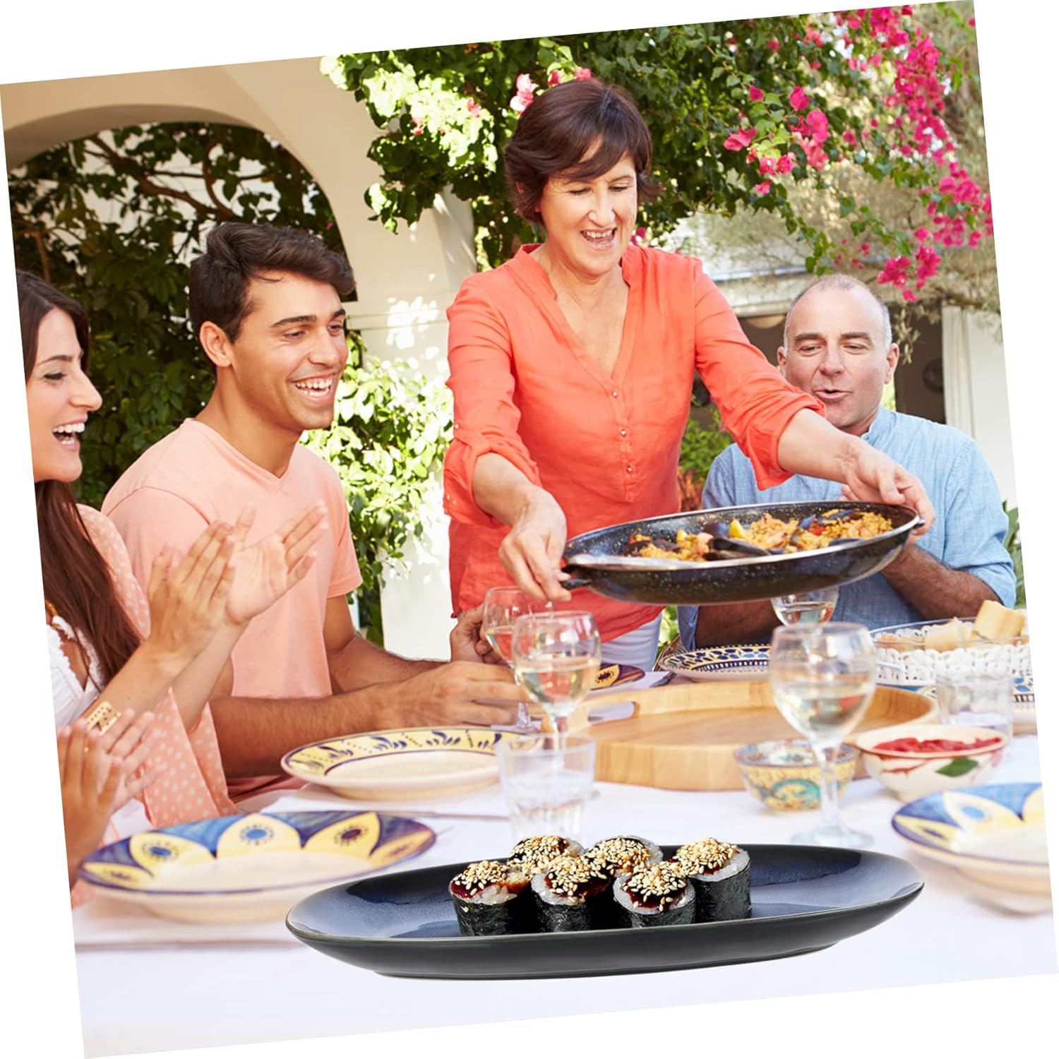 Package Include 1 x Ceramic Sushi Plate Features - Color:Blue sushi - Material: Ceramic. - Size: 34.7x16.8x3.5cm. - An for your friends, families ceramic serving - The plates features with sweet color, design, multi-function and dishes tray. - for family gatherings, parties, weddings, bars and restaurants, etc ceramic snack - A versatile gadget to serve for snacks, nuts, dried fruits, appetizers, sauces fish tray. fruit plate - Made from ceramic, detail and design.Goods Descriptionceramic serving plate You can use it for any occasions such as everyday use, family gatherings, parties, weddings, bars and restaurants.sushi plate Have you aesthetic fatigue to your home storage tray? Want to try some different plate to hold your food or fruit? Try our this ceramic dinner plate, very chic and stylish.fish tray More eye-catching and attractive than the routinist storage plates in the market
