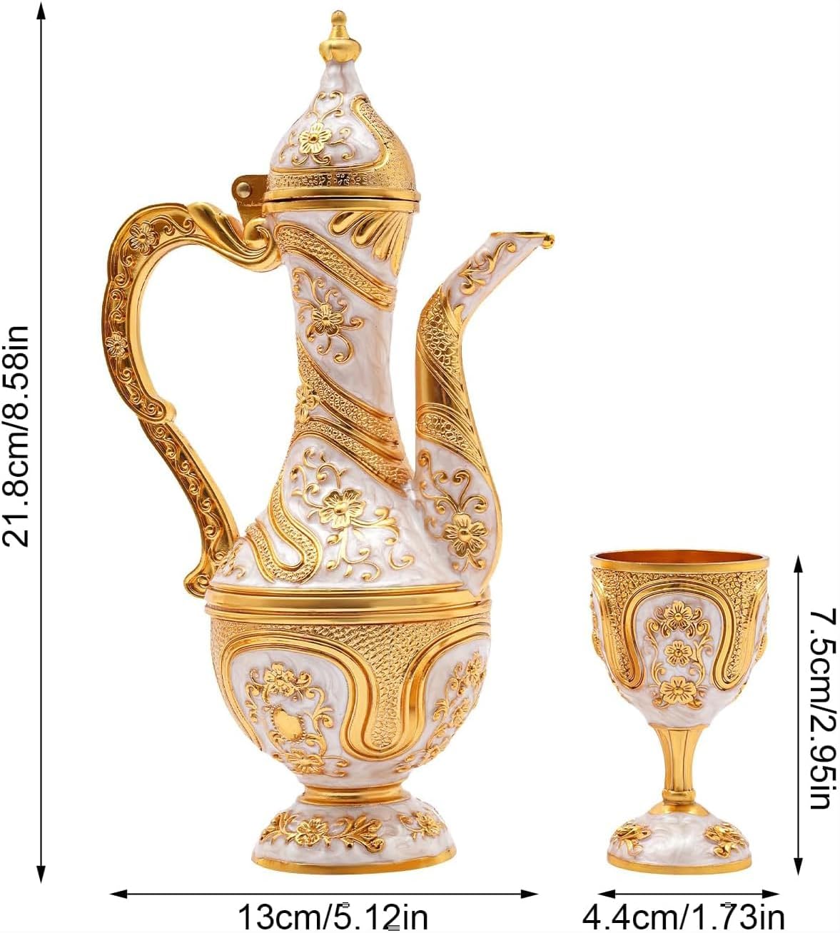 Specification:Material: Zinc AlloyColor: Gold, WhiteProcess: ElectroplatingStyle: VintageMount Type: TabletopAssembly Required: NoTea Tray Diameter: 24.5cm/9.6 inchTeapot Size(W*H): 21.8*13cm/8.58*5.12inEach Cup Size(W*H): 7.5*4.4cm/2.95*1.73inEach Cup Capacity: 15ml/0.51ozTeapot Capacity: 220ml/7.4ozPackage Size: 26*26*10.5cm/10.2*10.2*4.1 inchNet Weight: 1kg/2.2 lbGross Weight: 1.2kg/2.6 lbPackage Included:1* Teapot6* Cups1* Tea Tray