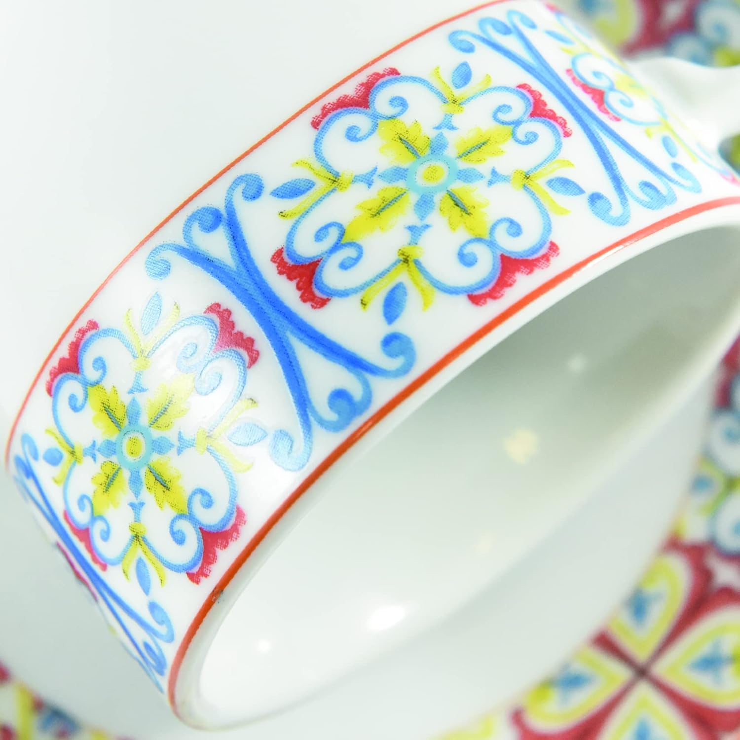 Set of 6 Coffee Cups with Pattern - Breakfast Kit Set 6 Cups and 6 Saucers House Collection! Ideal for starting a fantastic breakfast. Set: 6 cups + 6 saucers Cup size: 6x5h cm - saucers: Ø11cm