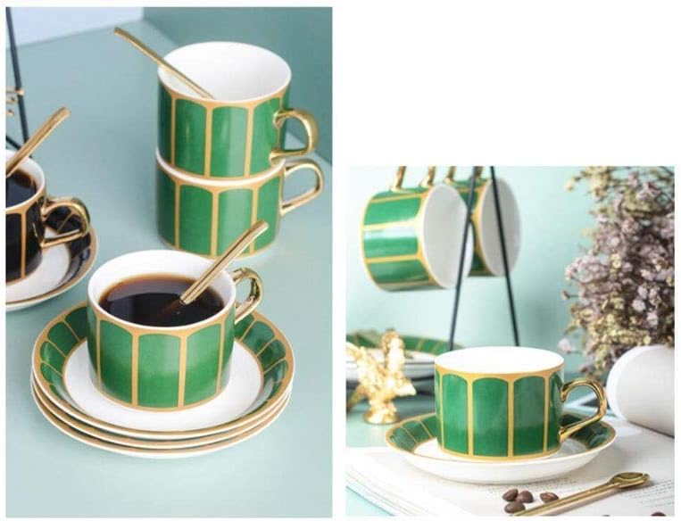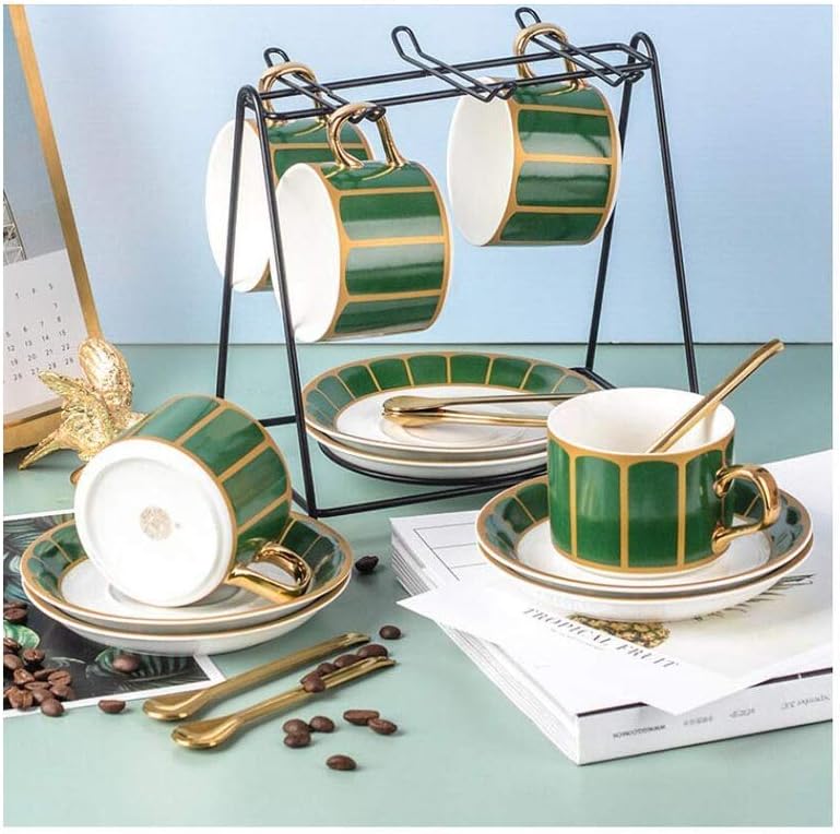 Name: European Coffee Cup / Afternoon Tea Set Material: Porcelain Size: Tea cup 7.5*10*5.5cm capacity 150 ml; dish diameter 13.5 cm spoon length 11.5 cm. Color: green black Package includes: cup * 4 saucer * 4 spoon * 4 cup holder * 1/ cup * 6 dish * 6 spoon * 6 cup holder * 1 Use occasions: office family and provide perfect ideal gifts for family and friends. Tips: This product is manually measured there is a little error the size is for reference only. If you have any questions about products or orders. Please send us an email first. We will deal with the problems for you in time.