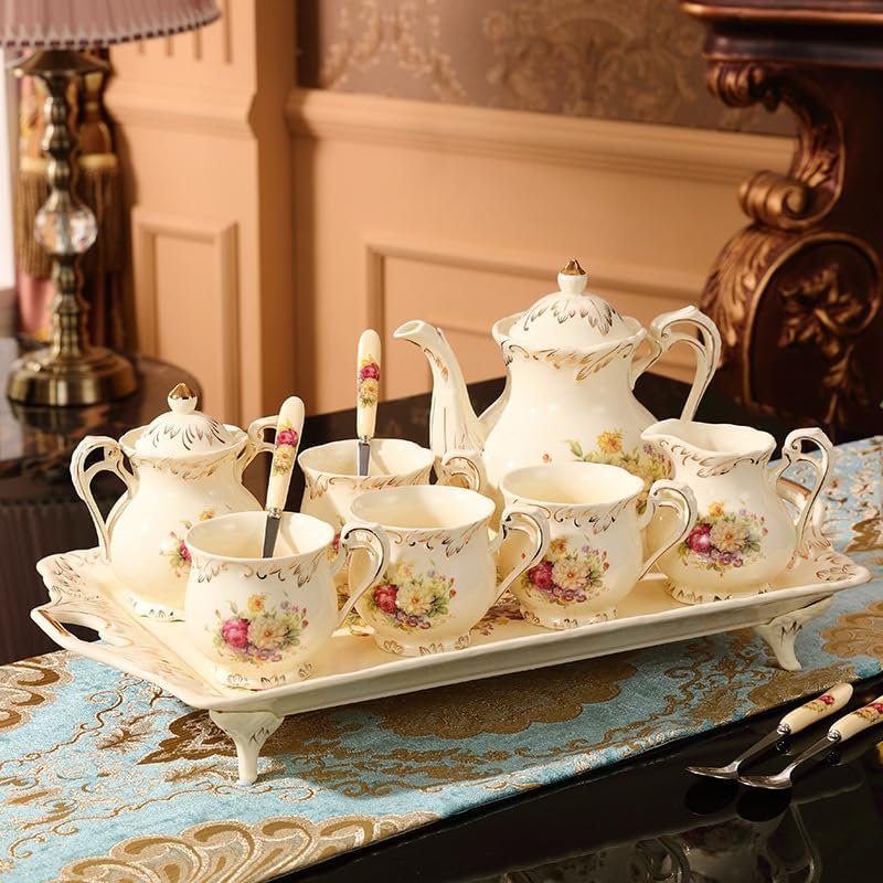 | Set Name | Teapot + Tray + 6 Cups (Rose Pattern) |