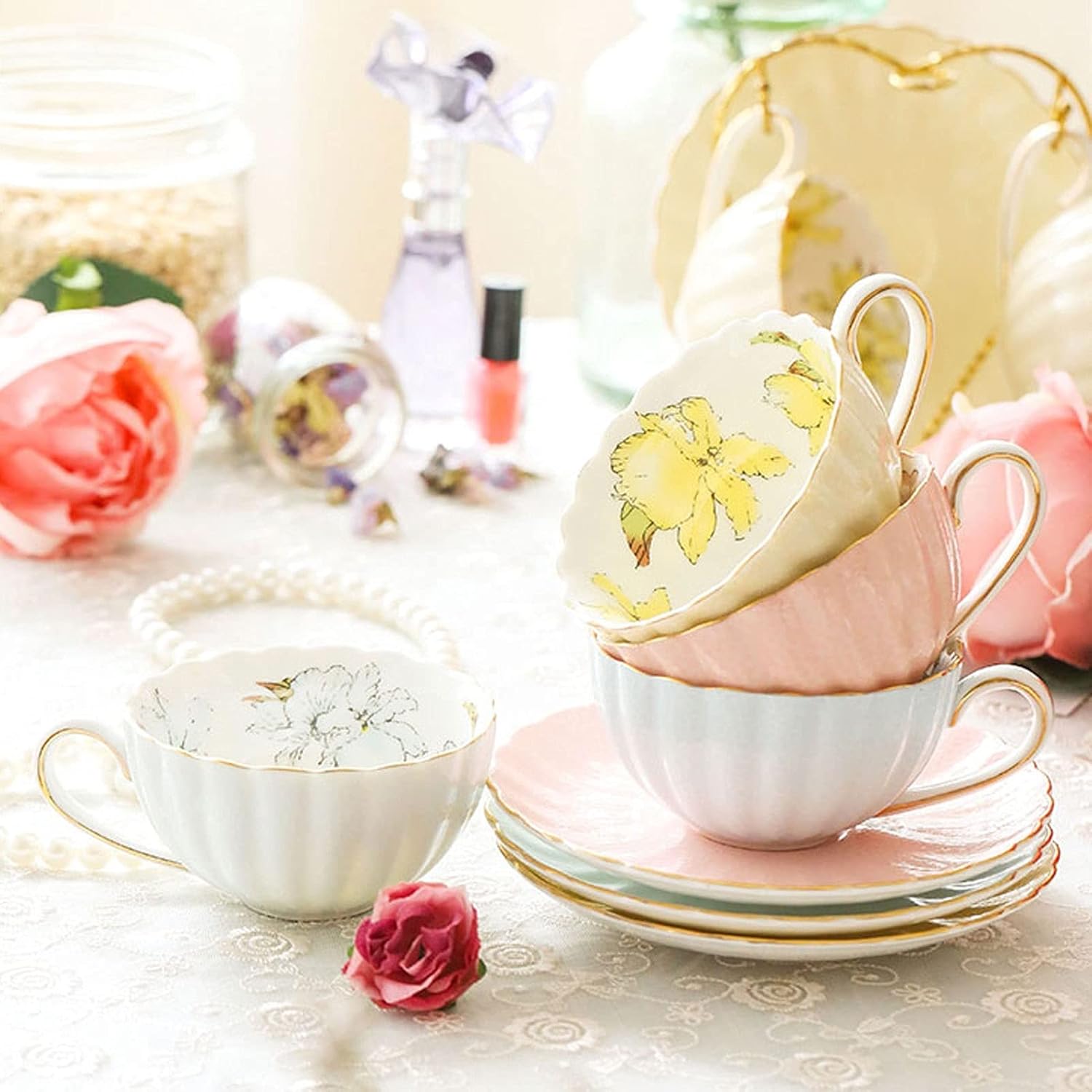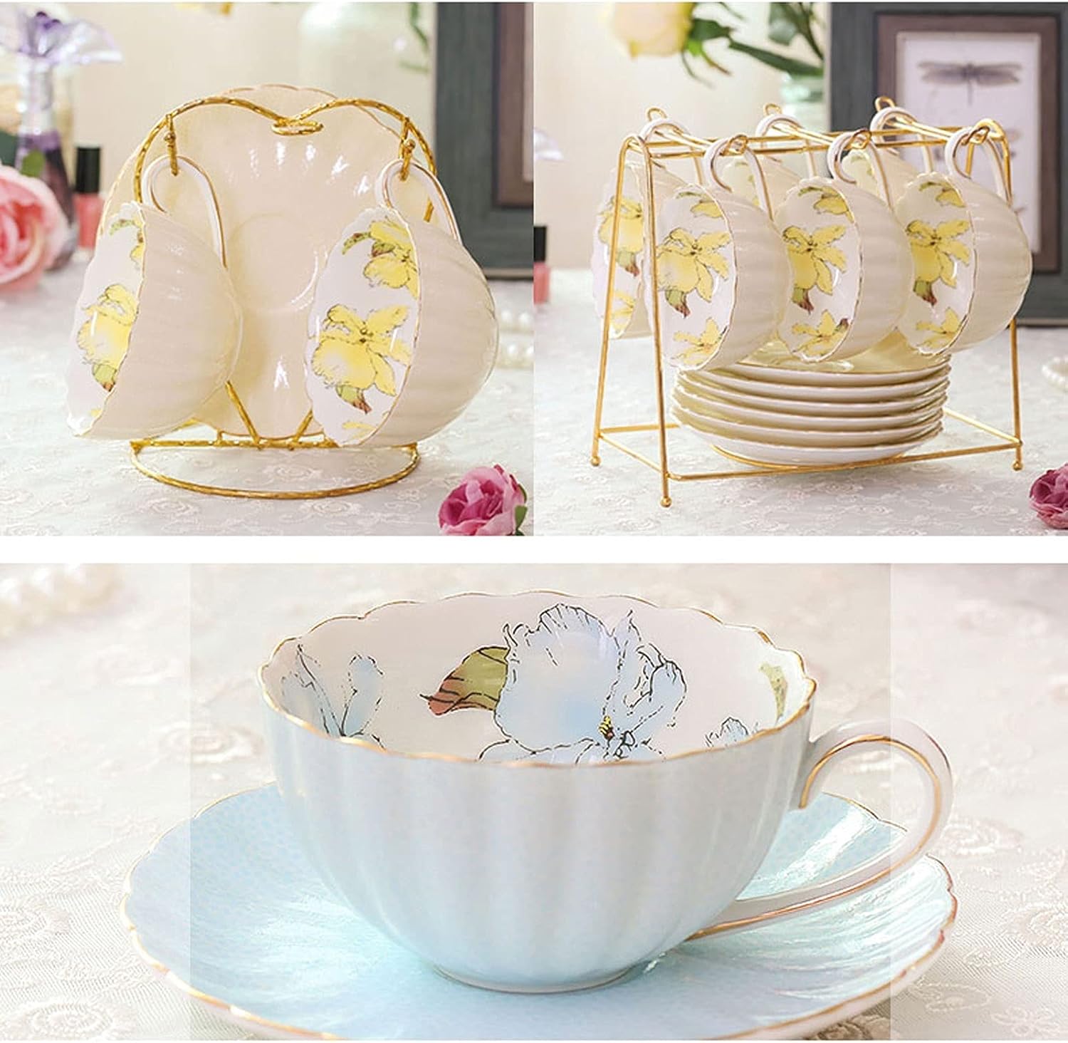 There's nothing quite like the smell of fresh brewed coffee first thing in the morning. Whether you like a little caffeine boost or prefer a calm cup of tea, a mug is the first thing you'll need. Product name: coffee cup, flower tea cup Product material: high quality bone china Applicable scenarios: living room, bedroom, coffee table, dining room, etc. Quickly: 1. Due to the difference between the light and the shooting angle or the light below the display, there may be slight chromatic aberration, please understand. 2. Please confirm the size and color before purchasing. 3. Product photos do not include products other than products. 4. Due to high temperature firing, impurities will appear, similar to small black spots, small holes and glaze flow. this is normal phenomenon. 5. Do not use hard cleaning tools to avoid scratching the surface of the product. 6. Manually measure the size, there may be some small errors, please refer to the actual product, thank you. 7. If you find any problems with our products, please feel free to contact us via email, we will solve these problems as soon as possible.