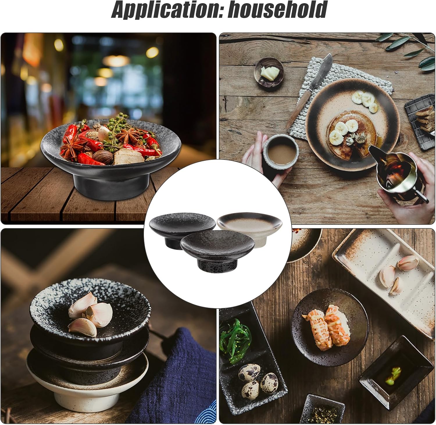 Package List 3 x Sauce Dish Characteristics -Product Info:Ceramic snack dish -Color: Assorted Color -Material: Ceramic -Size: Approx. 11.5 x 11.5 x 4 cm / 4.52 x 4.52 x 1.57 inch - Lightweight and portable, easy to carry and storage Seasoning Dish for Home. - for storing chili powder, tomato sauce, salt, mustard, pepper, and other seasoning Appetizer Plate. - Use a small body combine your sauce bowls together, make the table look no longer cluttered Restaurant Sauce Container. - Good for home, kitchen, party or outdoor camping, BBQ, picnic and more Dessert Dish. - A set of 3 Pcs sauece dish, enough quantity can meet you daily using needs Round Sauce Tray.Goods InformationSauce Dipping Dish Perfect for individual dipping, such as ketchup for french fries, butter for dripping shrimp, or chutney and olive oil, etc.Seasoning Dish for Home Are you still using an ordinary bowl to hold your food sauce? Do not find a suitable seasoning dish yet? Try our seasoning dish now, it will not let you down