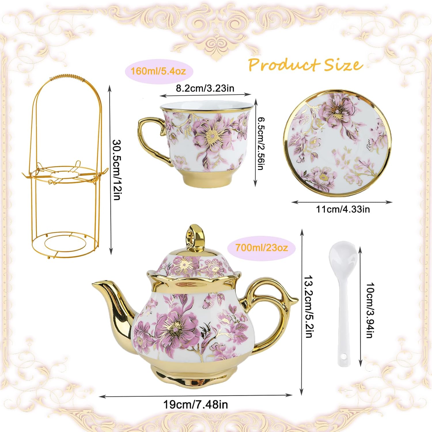 Product Name:Ceramic Flower Tea Set with Gold Stand Color: White & Purple Material: Ceramic (Porcelain) Packing: 6x Cups 6x Plates 1x Teapot 6x Spoons 1x Gold Stand