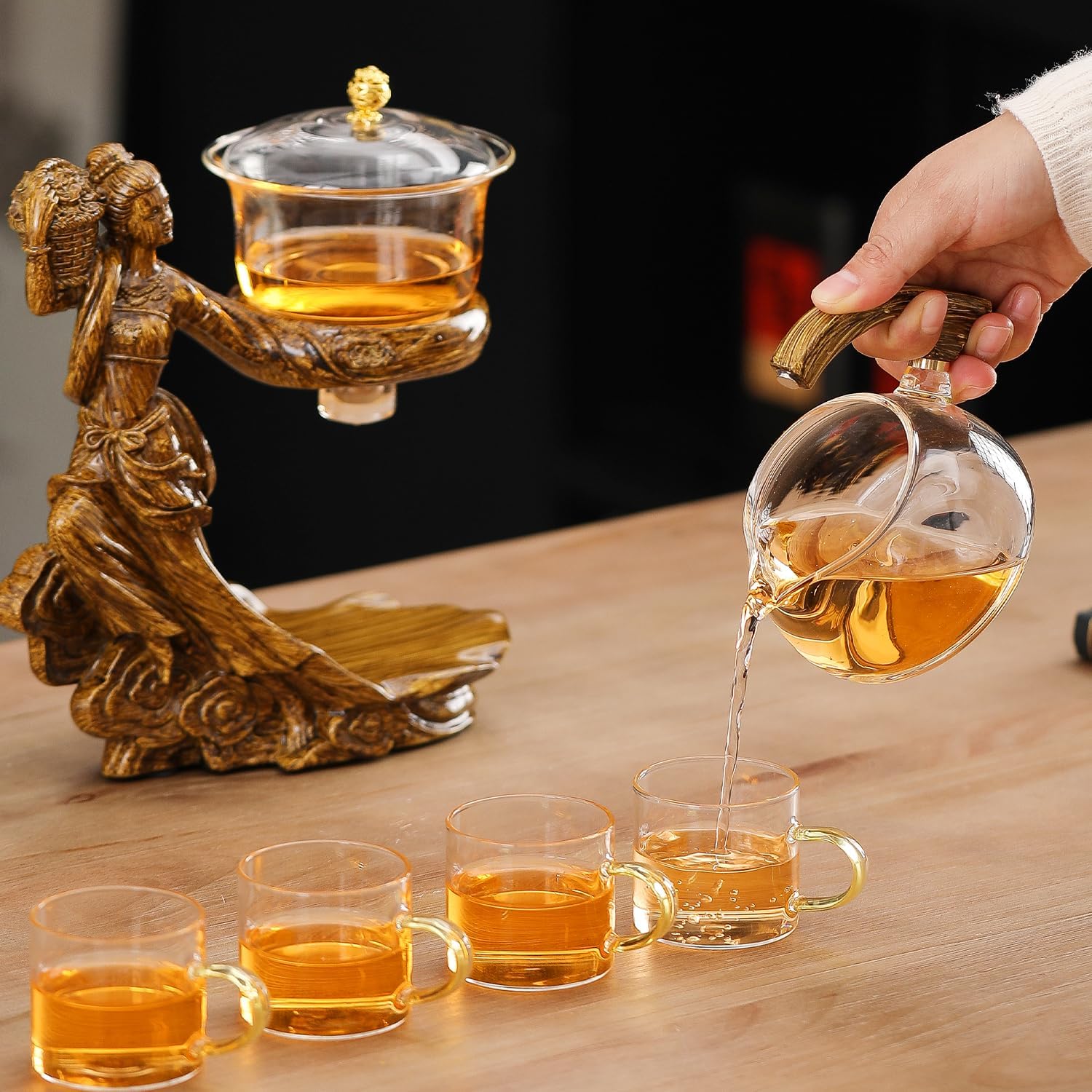• Kung Fu Tea Set: This magic teapot features a magnetic automatic design, making it easy to brew flower tea, loose tea leaves, tea bags, and fruit tea.
