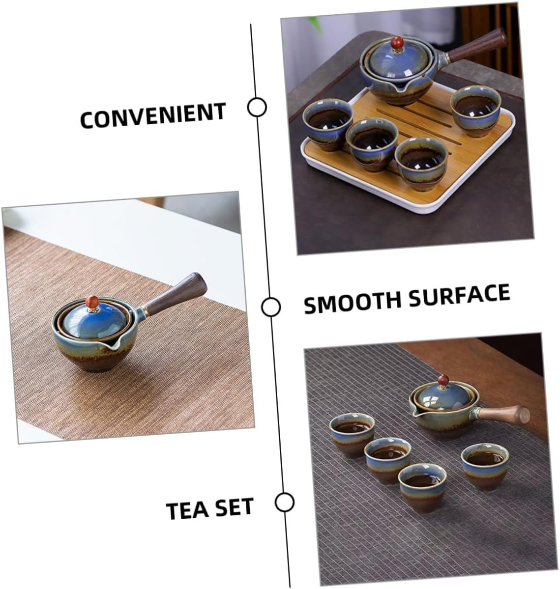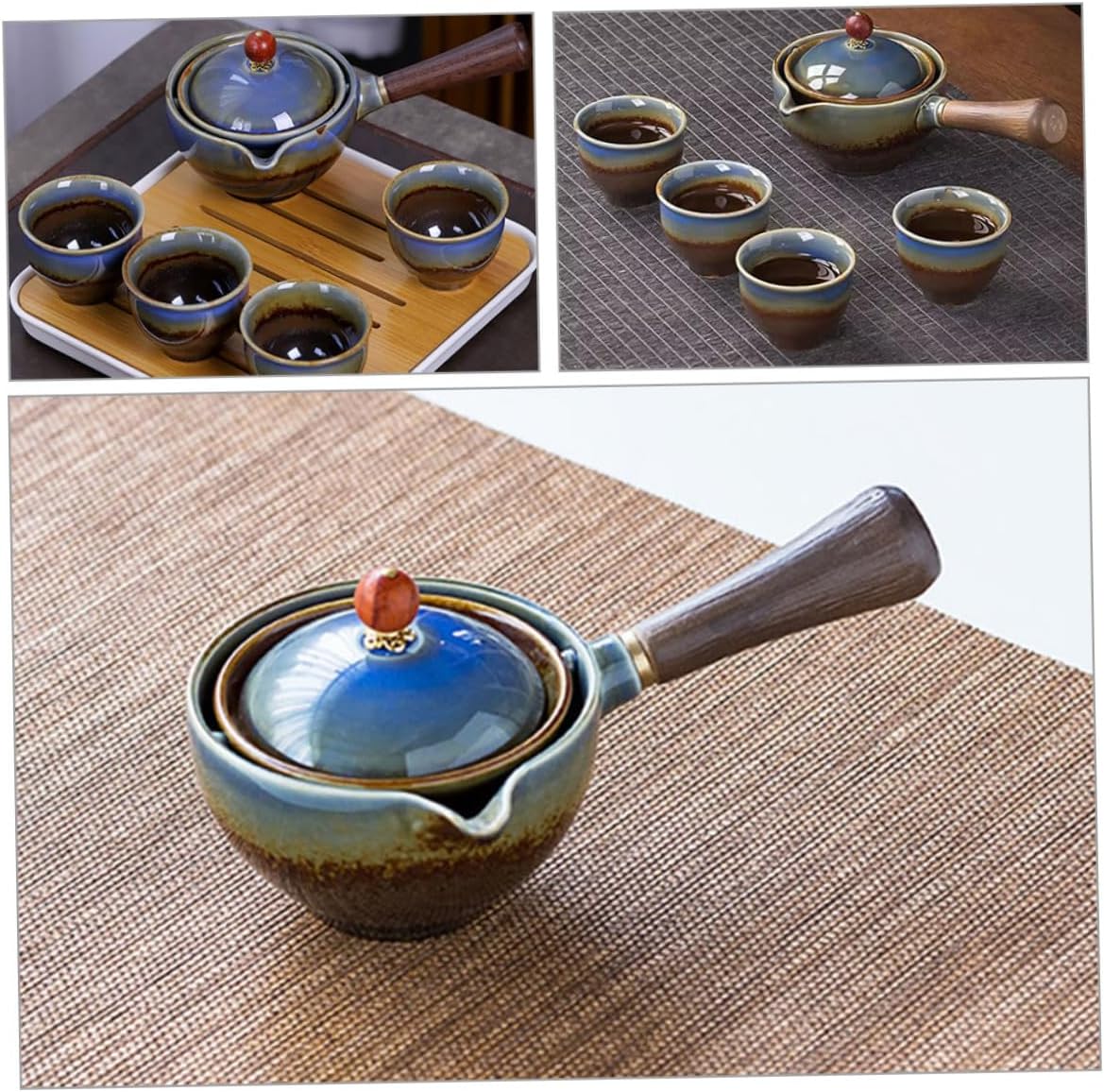 Package List 1 x tea pot 1 x tea tray 1 x bag 4 x cups Features -Color:Assorted Color -Size:5.50X5.50X4.00cm/2.16X2.16X1.57in (cup) -Material: Ceramic, canvas, foam, , wood -Product Info:Travel tea set - Small size and with a storage pouch, this tea set is easy to be carried with you for travel or other outdoor occasion. - This Travel Tea Set is made of ceramic, canvas, foam, , wood materials, can use it with peace of mind. - High durability and not easy to deform, with fine workmanship and good texture to practicality travel teaware kit. - This tea set is a good choice for your friends and families who are interested in tea or love drinking tea portable tea pot. - This is a portable complete set of tea set, including teapot, tea cups, tea tray, and a storage bag travel teacups.Goods Descriptiontravel size teacup The portable tea set can be a perfect for your friends who love drinking tea.travel teaware kit This set of tea set is portable, perfect for travel, camping, and other outdoor activities.travel teacups The teapot and tea cups are made from sturdy material, which is heat-resistant, not easy to crack, and easy to clean