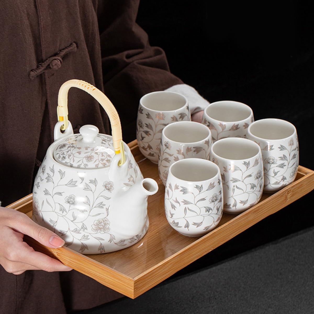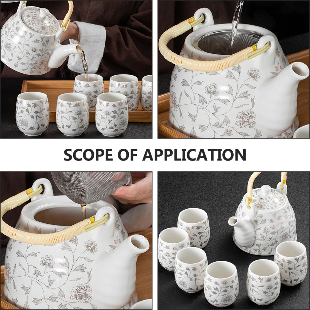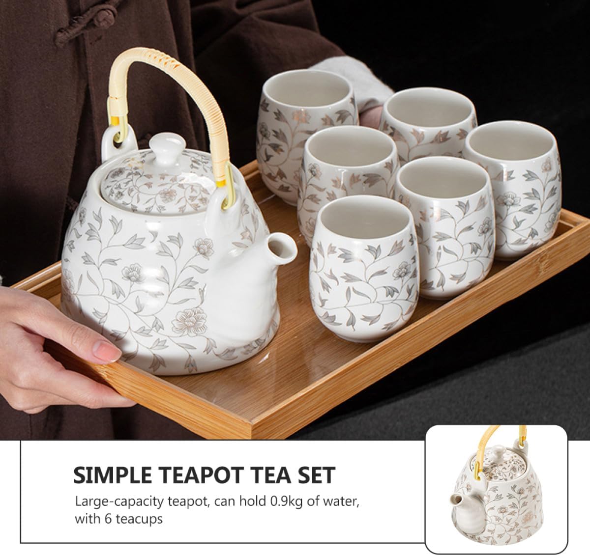 Package List 1 x Tea Kettle 6 x Teacups Features -Size Teacup: Approx. 5.6X7.6cm / 2.20X2.99in -Product Info:Teapot tea set -Color: White -Material: Ceramic & Stainless Steel & Nylon & Steel Wire -Size Teapot: Approx. 14.00X14.00X12.00cm / 5.50X5.50X4.72in -Capacity; Teapot is about 950ml; Teacup is about 180ml tea pot - The product is also can be given to your friends or dear family members as a housewarming teapots for tea. - The weight is light, which will not increase your extra burden and weight Home Teaware. - Simple and generous look design, the product is practical and decorative, wonderful using effect tea pots. - Adoption of and safe material, premium texture, the product is and unique. - The excellent workmanship of our product will bring you a Tea Cups.Goods Descriptionceramic pot This product is a teapot with tea cup, made of reliable and smooth material, premium and .Tea Drinking Cups It is perfect for loose leaf teas that can the unique fragrance of tea.porcelain tea pots You can give it to your friends and family who like making tea.ceramic tea cup And they will like it