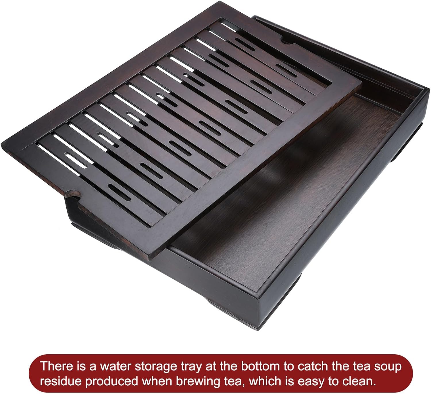 1. The tea tray is a tool for brewing tea and holding tea sets. It carries a strong cultural connotation and allows you to enjoy a wonderful tea-brewing time!2. The Chinese Gong Fu tea tray is made of bamboo, which is strong, finely polished and painted, smooth to the touch and durable.3. The hollow surface of the bamboo tea tray has a large drainage area and is smooth. All waste water is introduced into the bottom tray to keep the tea table clean.4. There is a water storage tray at the bottom to receive the tea soup residue produced when brewing tea. It is not easy to wet and dirty the tea table and is easy to clean.5. The tea tray is convenient for brewing, pouring tea, pouring tea, etc. when brewing tea. It can be placed in the office, family living room, tea room. It can be given as a gift to your friends, family and tea lovers to enjoy drinking tea with them.