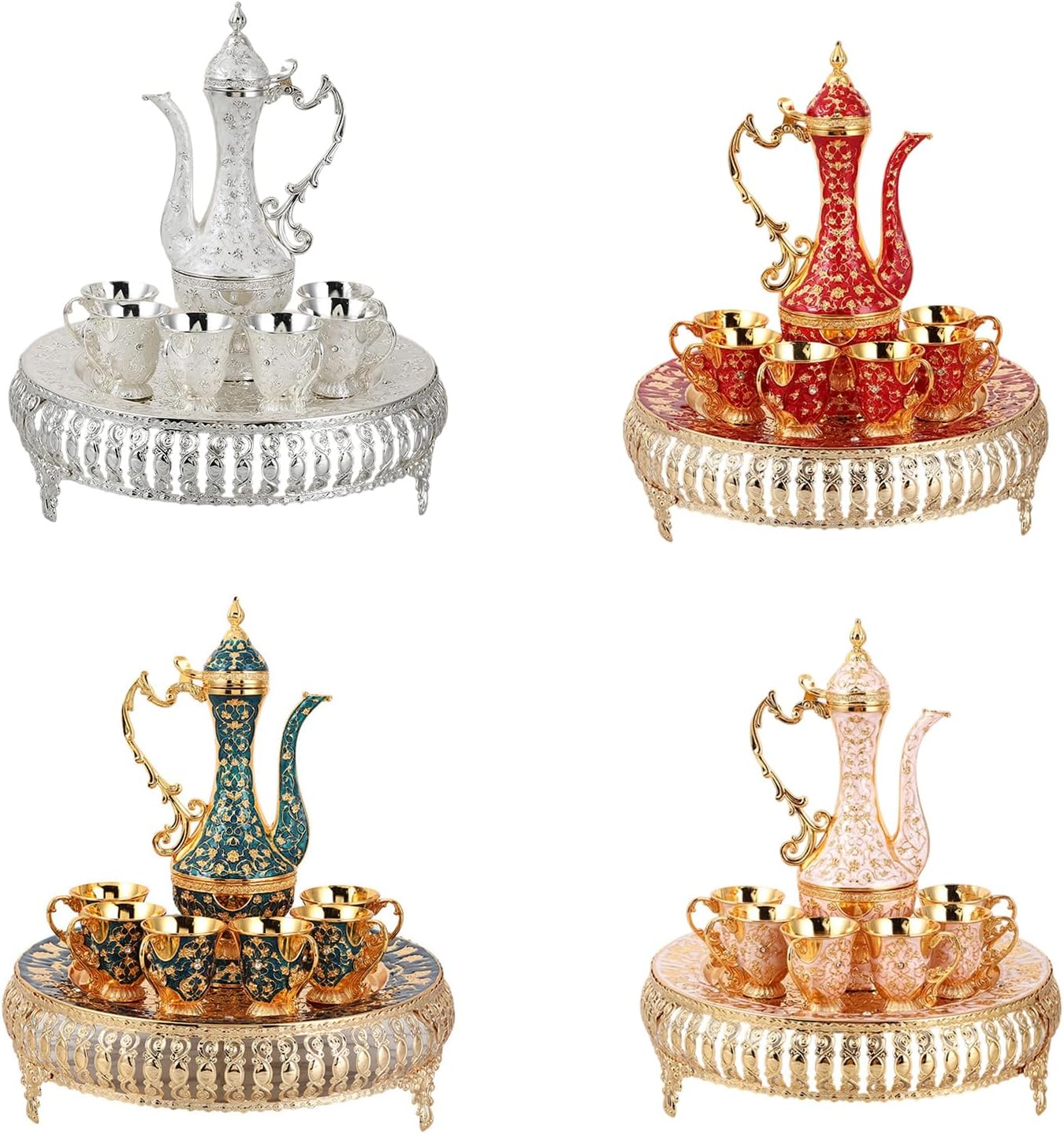 Retro Coffee Pots Set Including Tray and Teapot, Metal Cups Tea Service Set Cup Sets Turkishs Teapot Features: 8 Pieces Tea Set This is a very functional teacup set, Including Craft Tea Tray Teapot and Tea Cups Metal Wine pots set Our teapot make from qualty materials, safe to use, environmentally and This simple high end luxury wineware home decoration, giving people a bright feeling Stylish And European styles This table decoration makes your home more European styles, both practical and decorative.This tea set incorporates the ancient European styles of teacup, making it look both wonderful and stylish.Our teapot set is a usable type of handicraft decoration suitable for gift giving and table decoration Suitable For Wedding Gift Our Tea cups set of 6 is suitable for placing in the bedroom, entrance, living room, dining table, and so on Wonderful wedding newlyweds or congratulation on entering a new house Specifications: Materials: Metal Color: 01, 02, 03, 04 Package Includes: Vintage Coffee pots Set Note: Please allow 1-2cm errors due to manual measurement Due to the differences betweeen different monitors, the picture may not reflect the actual colour of the item
