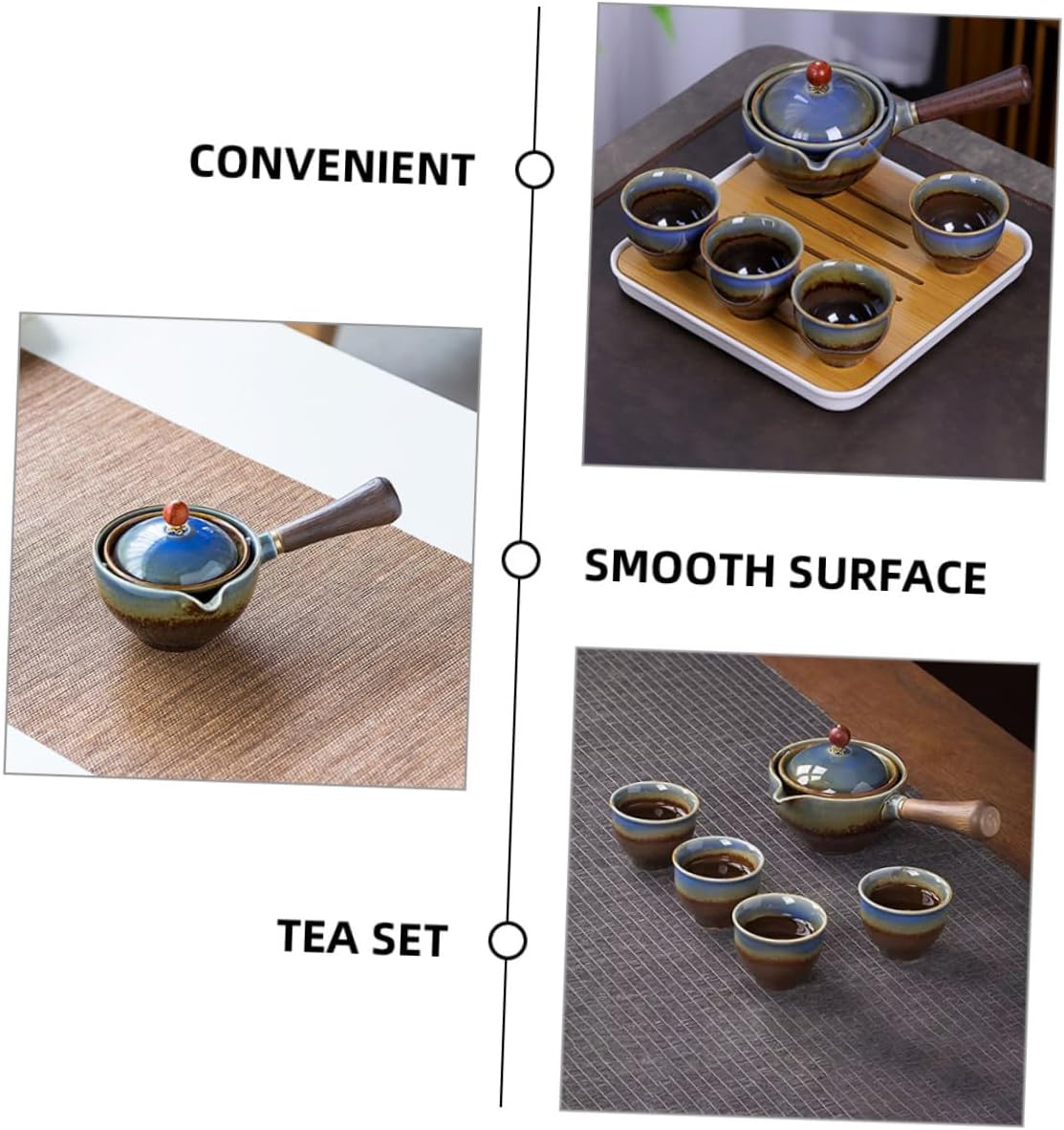 Package List 1 x tea pot 1 x tea tray 1 x bag 4 x cups Features -Material: Ceramic, canvas, foam, , wood -Size:5.50X5.50X4.00cm/2.16X2.16X1.57in (cup) -Product Info:Travel tea set -Color:Assorted Color - Fine workmanship, polished surface, excellent production process, convenient and practical portable teapot. - Equipped with travel bag, easy to carry, outdoor, business or travel, easy to carry, enjoy afternoon tea portable tea pot. - Wide uses, the tea cup and teapot set is great for tea, blooming teas, kung fu tea, teabags and fruit tea travel teapot teacup kit. - A good selection for those who like making tea and drinking tea, they will be happy for that travel size teacup. - This set of tea set is small, but very complete, which includes tea cups, teapot, tray, and a carry bag ceramic teacup kit.Goods Descriptiontravel teaware kit It can be perfect for loose-leaf teas that can the unique fragrance of tea.ceramic teacup kit This simple and practical travel tea set kit, mainly made of sturdy material, portable and .kung fu tea tray You can give it to your friends and family who like making tea.travel tea serving kit And they will like this set of tea set