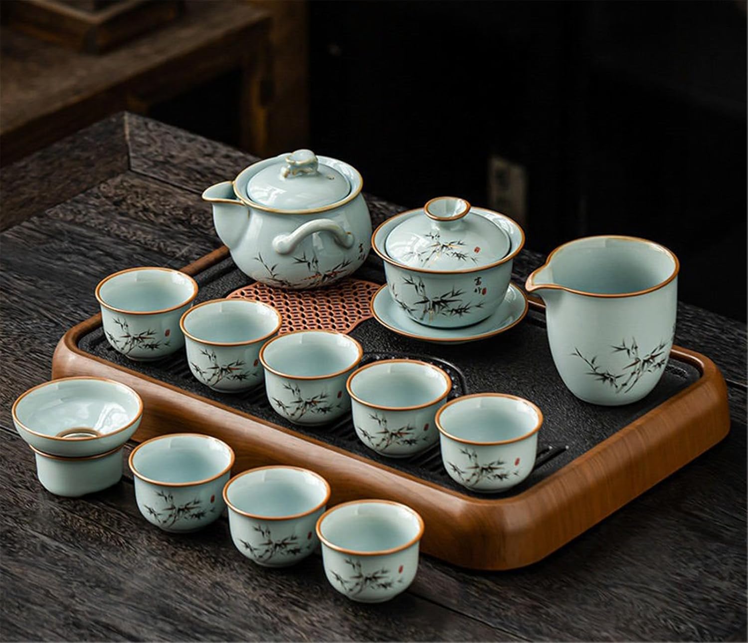 Welcome to this Kung Fu tea set, specially designed for tea enthusiasts. We understand that a perfect cup of tea requires the right vessel. This set blends traditional tea brewing artistry with modern aesthetics and practicality, elevating your experience from visual delight to sensory enjoyment.solo tea set, two person tea set, heat resistant tea cup, crackle glaze ceramic, blue and white porcelain, honeycomb tea set, persimmon tea set, lotus design tea ware, hand painted tea pot, side handle teapot, lift handle teapot, rotating tea maker, stone mill teapot, electric tea tray, compact tea set, minimalist tea set, zen tea ceremony, loose leaf tea accessories, oolong tea set, pu erh tea set, matcha tea set, tea ceremony essentials, tea set with strainer, tea set with tray, dishwasher safe tea cups, microwave safe tea ware, lead free ceramic, decorative tea pot, modern tea set, vintage style tea set, elegant tea gift, housewarming tea gift, new year tea gift, wedding tea gift, business gift tea set, meditation tea set, daily use tea cups, special occasion tea set, beginner tea set, high end tea ware, artisanal tea pot