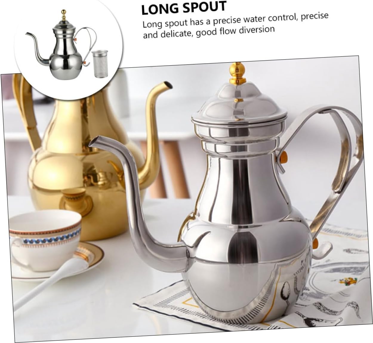 Package List 1 x Coffee Kettle Features -Capacity:1.5L coffee brewing pot -Color:Silver coffee serving teapot -Size:26.50X13.00X9.00cm/10.41X5.11X3.54in stove top coffee pot -Product Info:Stainless steel teapot -Material:Stainless brewed coffee pot -stable, workmanship, which looks stable and advanced coffee pot. -Manufactured with stable stainless steel material, practical and for use metal tea kettle. -It has a simple design, but very practical in use. Easy to use, bring much convenience to you kitchen kettle. -Also, this delicate kettle can be a good gift choice for your friends, and they will like kettle. -Perfect container for hot and cold beverages both, like water, tea, coffee, etc coffee pouring pot.Goods Informationcoffee pouring pot Are you looking for a practical coffee pot? Are you looking for a reliable tool to help you store your coffee? If so, then stop looking for it! Our professional coffee pot is made of stable and practical stainless-steel material, which must be satisfied your needs.delicate filter kettle This is one of your