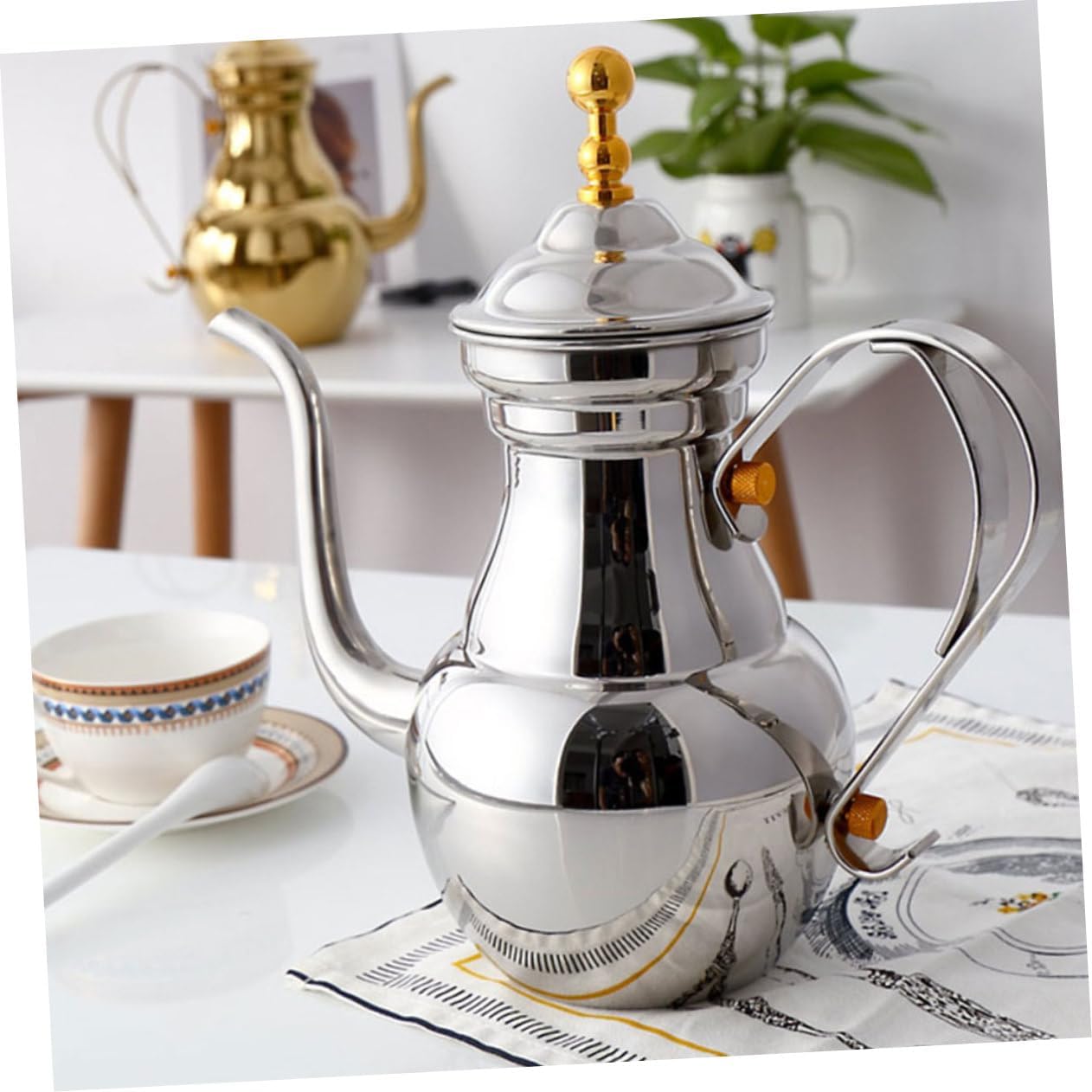 Package Include 1 x Coffee Kettle Features -Size:26.50X13.00X9.00cm/10.41X5.11X3.54in delicate coffee kettle -Product Info:Stainless steel teapot -Material:Stainless Steel kitchen kettle -Capacity:1.5L long spout coffee kettle -Color:Silver delicate filter kettle -Also, this delicate kettle can be a good gift choice for your friends, and they will like it teapot stainless steel. -Manufactured with stable stainless steel material, practical and for use coffee kettle pot. -It has a simple design, but very practical in use. Easy to use, bring much convenience to you stove top coffee pot. -stable, workmanship, which looks stable and advanced tea making kettle. -Perfect container for hot and cold beverages both, like water, tea, coffee, etc long spout coffee pot.Goods Descriptionspout coffee pot Are you looking for a practical coffee pot? Are you looking for a reliable tool to help you store your coffee? If so, then stop looking for it! Our professional coffee pot is made of stable and practical stainless-steel material, which must be satisfied your needs.convenient coffee pot This is one of your