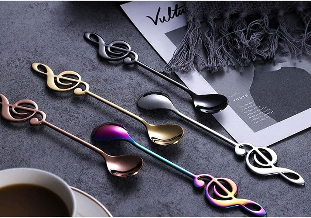 They're also great for foods like soup, yogurt, pudding, ice cream, cereal, peppers, and mashed potatoes Material: stainless steel Quantity: 5 pieces Color classification: silver music spoon, golden music spoon, rose gold Applicable scene: family, restaurant, kitchen, outdoor Due to the different feelings of lights, monitors and personal colors, there will be a color difference between the actual product and the photo, please refer to the actual color Except for the main product shown in the main image, other items are for display only, excluding other items