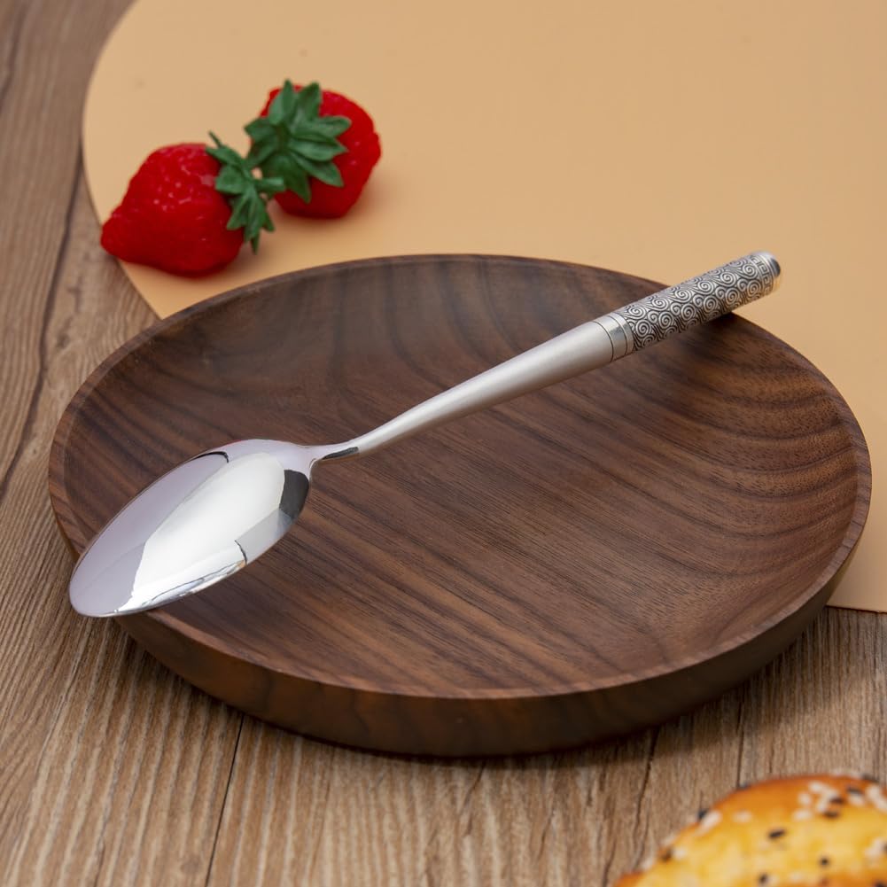Elevate your dining experience with this exquisite 999 Sterling Silver spoon, featuring an elegant decorative spiral pattern handle that adds a touch of sophistication to your table setting. Perfectly sized at 6.69 inches in length with a comfortable 1.18-inch width, this versatile utensil is ideal for desserts, coffee, soup, and various dining occasions. The premium sterling silver construction gives it a substantial yet balanced feel at 1.4 ounces. Each spoon comes presented in a gift box with a certificate, making it an excellent choice for special occasions or as a treasured addition to your fine dining collection. The high-polish finish and intricate handle design showcase superior craftsmanship, while the durable sterling silver material ensures this piece will maintain its lustrous appearance through years of use. Whether serving delicate desserts or enjoying your morning coffee, this refined spoon combines functionality with timeless elegance. Silver products have the function of anti-corrosion and preservation. The released silver ions have a soft texture, high ductility, and are not easily corroded by chemical substances. They are highly stable and have low activity. This Silverware is exquisite and noble, with practical, appreciation and collection value.