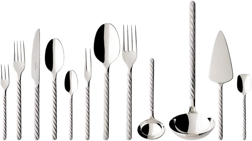 The cutlery matching the Montauk crockery collection has a distinctive rope relief on the handle and sits comfortably in your hand. Whether a cosy meal for two or a relaxed evening with friends: Montauk is the ideal cutlery for every day, sleek yet effective. Villeroy & BochTimeless elegance, design and high quality: This is what the name Villeroy & Boch has stood for since 1748. Designers and product managers develop collections and concepts based on this tradition that shape living environments. From bathroom and wellness to tableware, tiles and kitchens, Villeroy & Boch products are distinguished by their refined appearance, intuitive manageability and durable quality. Prepared to be surprised and impressed by Villeroy & Boch made by Villeroy & Boch design.Set consisting of: 6 x table forks 6 x table knives 6 x table spoons 6 x coffee spoons 6 x cake forks 1 x cutlery canteen
