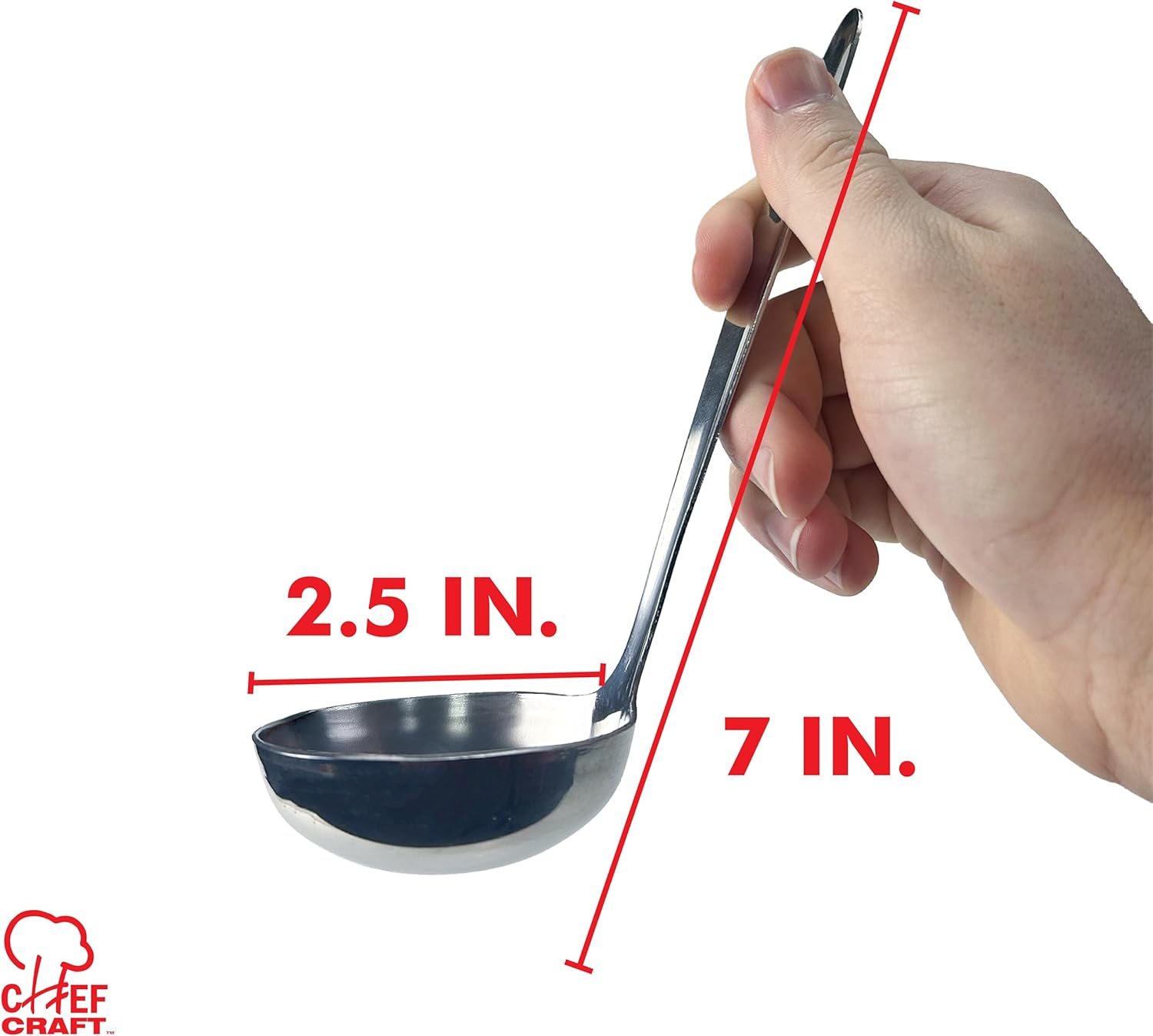 The Chef Craft Stainless Steel Serving Ladle is great for use for family-style dinners and buffets. It is great to serve small portions of soup or gravy. It is also good to use for plating sauces. This smaller-sized ladle is great for controlling portions when serving a variety of foods.The sleek mirror finish provides a classic look that is picturesque in any style kitchen. Dishwasher safe for an easy and efficient clean up.