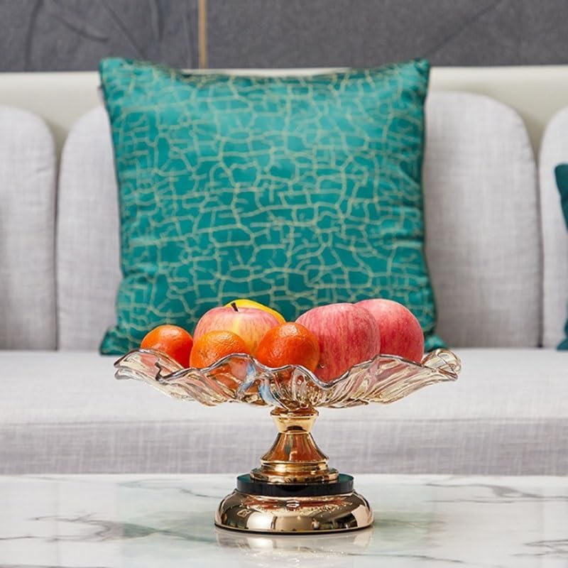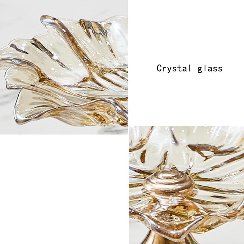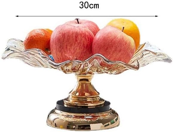 Product: Fruit plateMaterial: Crystal glass + HardwareSize: As shownColor: As shownScope of application: families, hotels, coffee shops, etcPackaging: YesTarget users: Candies, fruits and dried fruitsPackaging contents: Fruit platter (other items excluded)Note: Due to manual measurement, please allow an error of 2 to 3 centimeters.Due to lighting conditions, the actual color may slightly differ from the image.