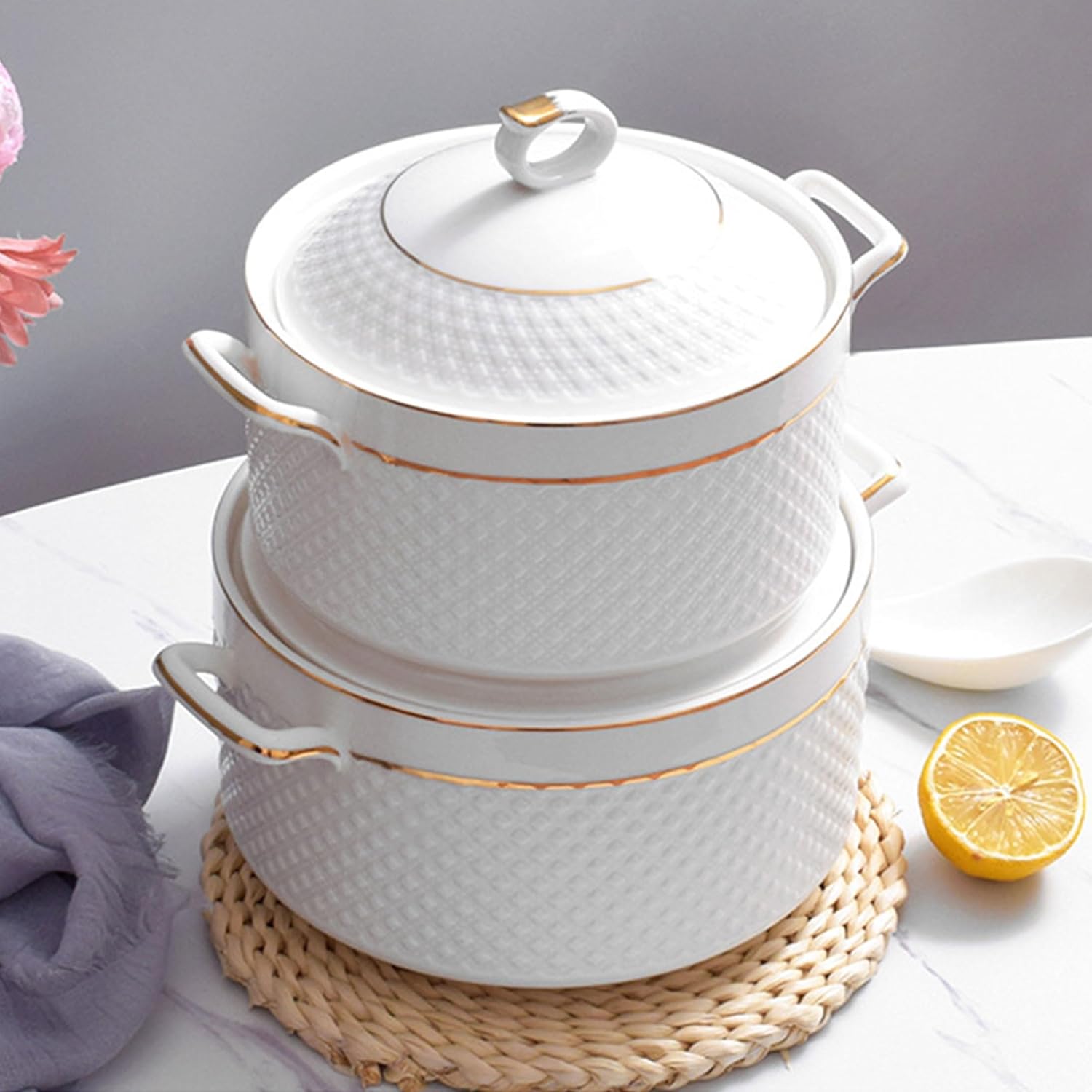 Features:- Color: White- Material: Bone china/porcelain- Crafted from durable bone china, this tureen is both practical and resilient for everyday use.- Its elegant light luxury design enhances your culinary presentations, leaving a lasting impression on your guests.- Designed with an anti-slip bottom, ensuring stability when placed on the table.- Versatile in use, perfect for serving fruits, snacks, soups, ice creams, and more.Package Includes:- 1 x Tureen- 1 x Lid- 1 x SpoonPrecautions:1. Please note: Minor imperfections such as small black or white dots and slight dents may occasionally occur in ceramic products. These are normal and do not affect quality.2. Color differences may arise due to lighting conditions and display settings; please refer to the actual product for true color representation.