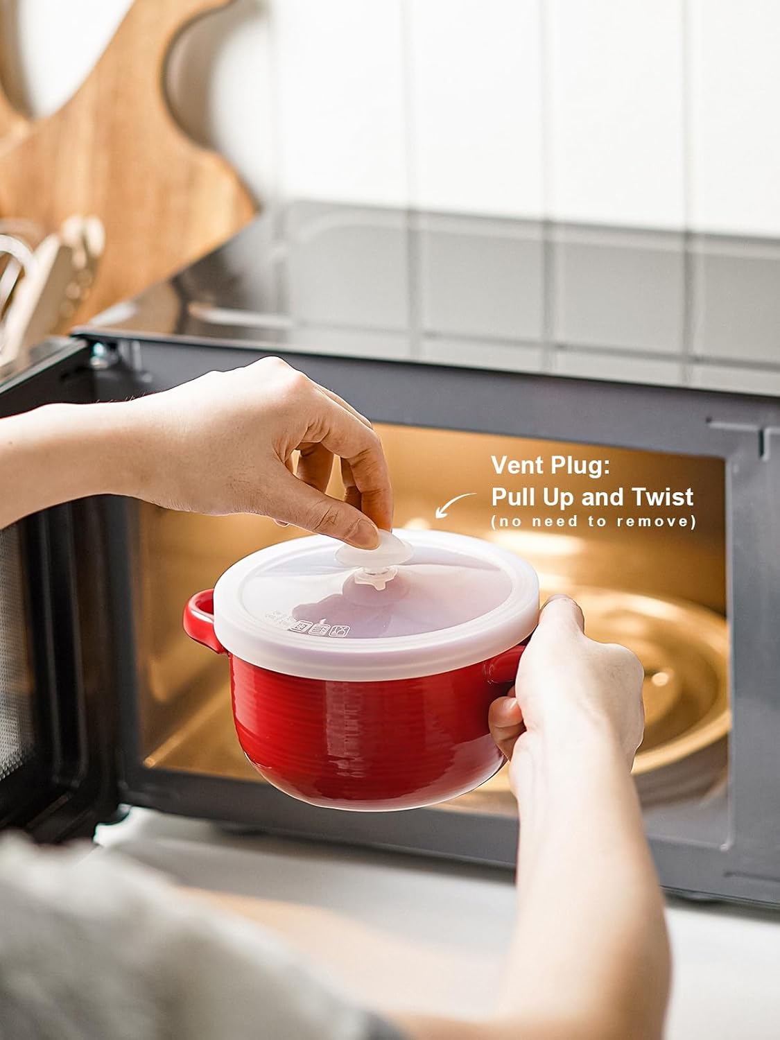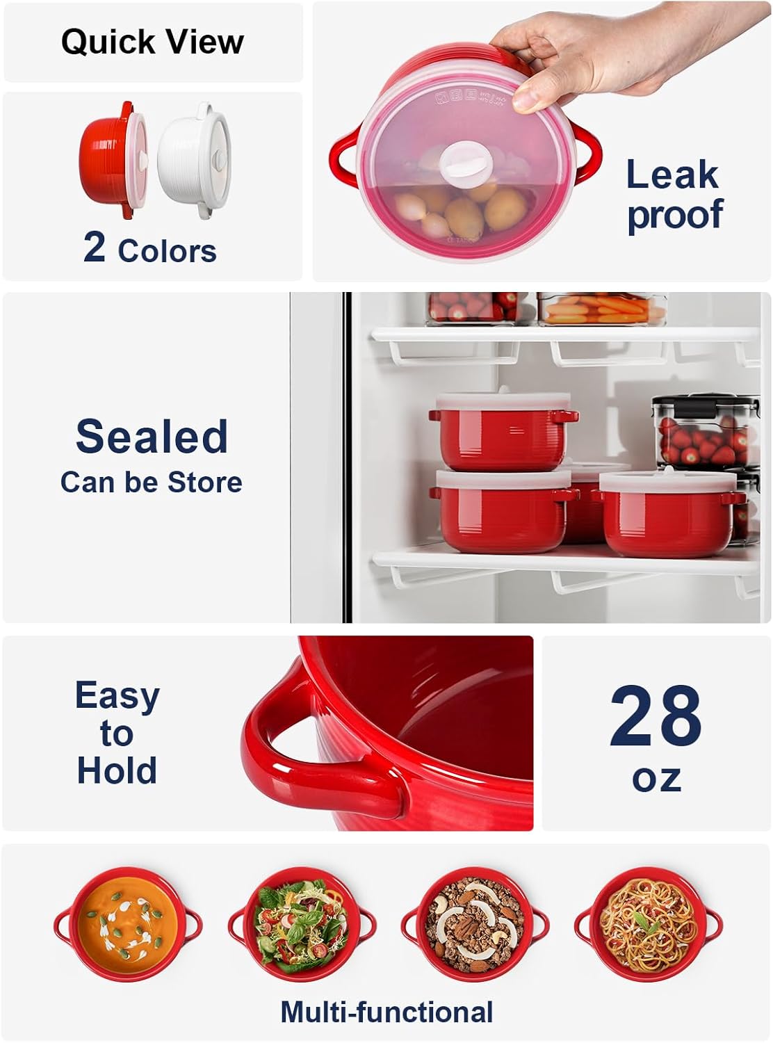 LE TAUCI 28 oz Red Ceramic Soup Bowls with Handles and Silicone Lids, Set of 2 & LE TAUCI 22 ozFrench Onion Soup Bowls, Set of 4