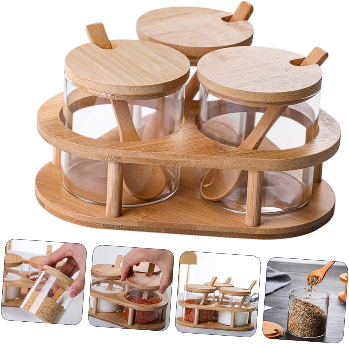 Package List 3 x seasoning cans 1 x shelf 3 x spoons 3 x lids Features -Size: About 1950X1950X800cm/766X766X314inch Glass Seasoning Container. -Color: Assorted Color Multifunctional Seasoning Can. -Material:Glass and wood Seasoning Jar. - Large capacity space to store more condiments Glass Seasoning Jars. - Waterproof, , , protect the freshness of condiments Seasoning Container. - materials, safe, , no peculiar smell, and can be in direct with food Seasoning Box. - Carbonized and wood cover with a mouth-open design, which is convenient to hold the spoon Seasoning Can. - Creative shape, with carbonized wood cover, stylish and beautiful Condiment Jar.Goods DescriptionGlass Seasoning Container Composed of , you can use it with confidence.Multifunctional Seasoning Can Suitable for home, restaurant and hotel use.Kitchen Seasoning Pot You can add seasonings, such as salt, pepper, spices, etc.Seasoning Container Convenient to storing salt, pepper, and other seasonings.Seasoning Jar This is a set of seasoning box