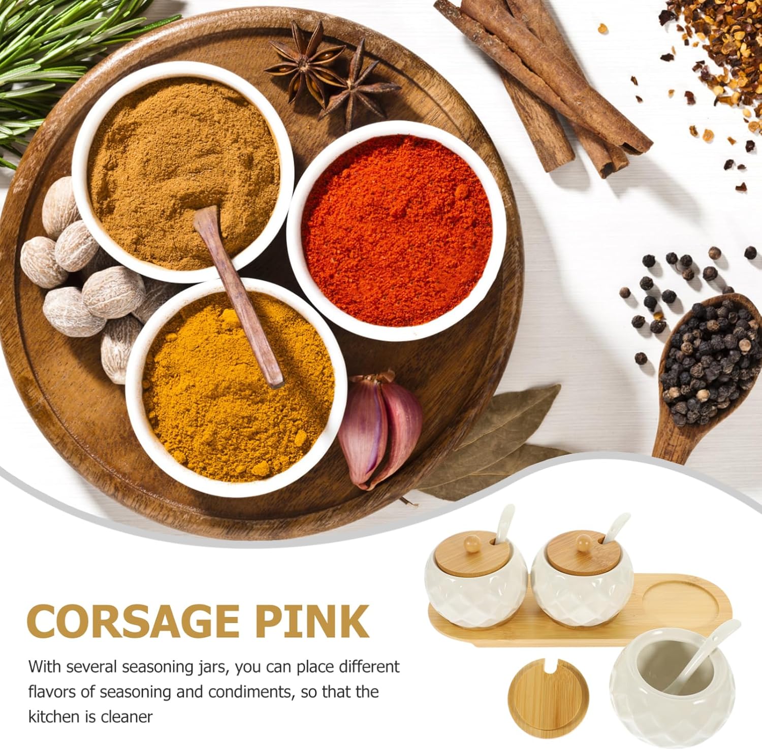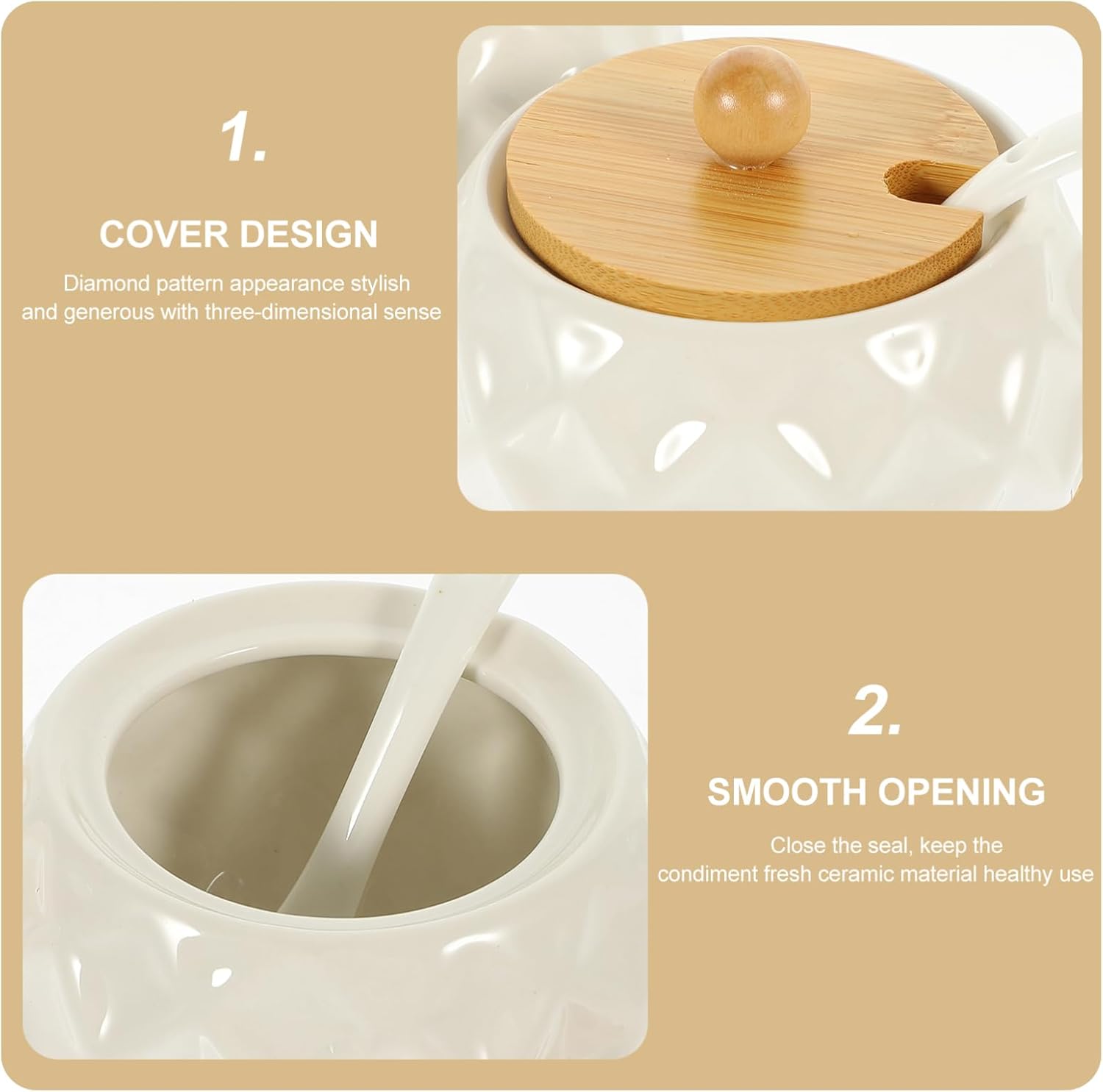 Package List 3 x Seasoning Jars 1 x tray Characteristics -Material:Ceramic, condiment dispenser -Size:28.40X9.50X1.00cm/11.16X3.73X0.39in(tray) coffee sugar tea containers -Size:9.00X9.00X7.00cm/3.54X3.54X2.75in(jar) kitchen seasoning jar -Color:Multi storage holder - The use of simple but generous design, beautiful appearance, can the beauty of the whole environment household spice container. - The lid is lightweight and easy to handle, making this seasoning set convenient for daily use household kitchen spice jar. - The tight seal that your spices and seasonings stay fresh and flavorful for longer, very convenient ceramic jar. - The diamond pattern of this desktop seasoning jars set adds a touch of sophistication to your kitchen seasoning container. - The ceramic material is easy to clean and maintain, making it a addition to your kitchen condiment jar.Goods Descriptionspice holder Designed with a lid, allow you to easily store your seasonings.seasoning dispenser This lidded spice Jar with tray is suitable for storing all kinds of salt, sugar, spices and more.condiment jar Made of gentle and lasting material, give you a pleasant using experience.kitchen seasoning jar Great for picnic table, home kitchen, dining and restaurant, bringing much convenience