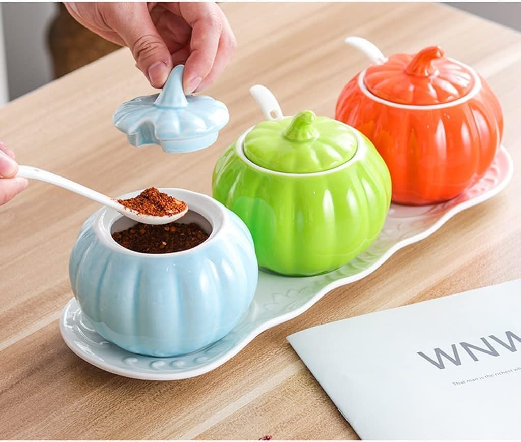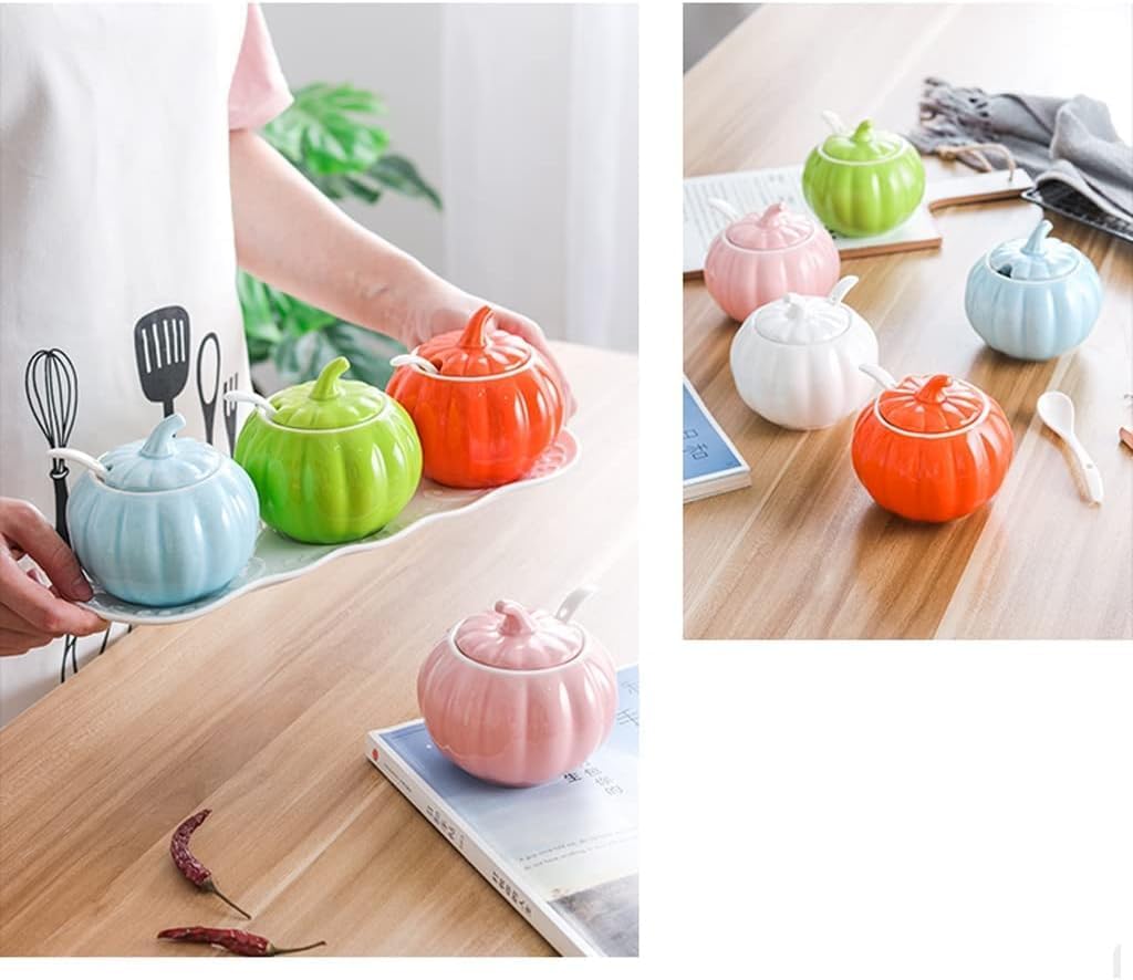 Spice jar sets make your kitchen look more organized. These condiment sets provide a harmonious feel for you and your friends, making them perfect gifts for anniversaries, Valentine's Day, weddings, engagements, or holidays. Product Name: Spice Jar Set / Spice Box Set / Condiment Container Set Material: Ceramic Product Style: Lid + Spoon + Tray Spice Jar Size: 10.2cm/4.01in*9.6cm/3.77in Product Package Contents: 1 * Spice Box Set Can be used to hold a variety of seasonings such as pepper, sugar, salt, spices, chicken stock powder, starch, and more. It can help you save space and keep your kitchen tidy and elegant. This is the perfect spice jar set for homes, cafes, and more, meeting your various needs without cluttering your beloved kitchen! It complements any home decor and is the perfect holiday gift for family, friends, and colleagues, perfectly integrating into any home style and enhancing the quality of life.
