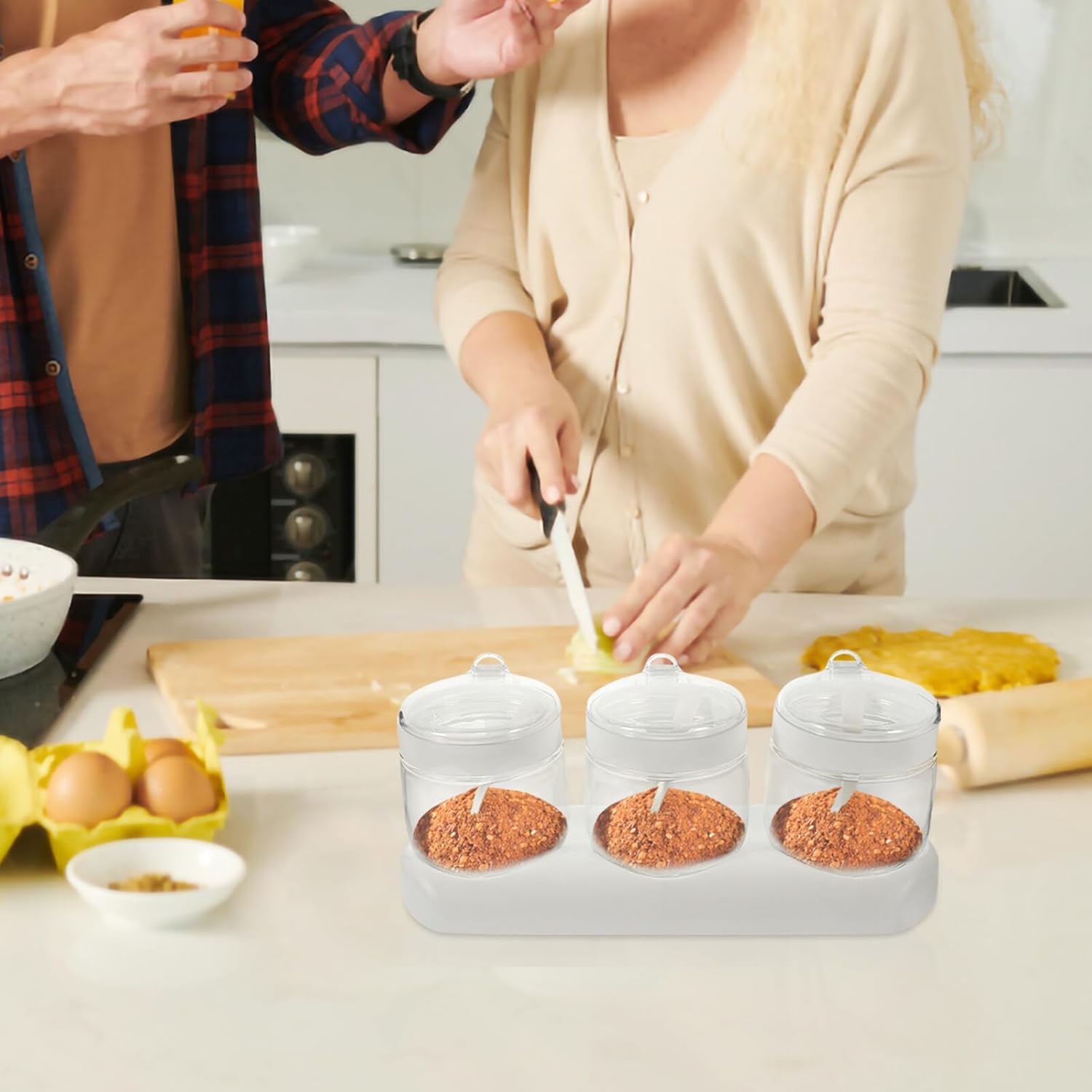 Package Include 3 x Spice Jars 1 3 x Spoons Features -Product Info:Seasoning bottle set -This Seasoning Bottle is easy to clean. Perfect kitchen condiment storage helper. It can be used to hold a variety of condiments: pepper, sugar, salt empty spice jars. -Size:30.50X11.50X2.50cm/11.99X4.52X0.98in -Material:Glass, PP and -Color:White -Note: The volume of each spice container is 350 ml glass seasoning jar. -Equipped with lid design, can close the air barrier when not in use, keep the seasoning clean and dry seasoning container. -Made of premium and glass material, the product is and practical in use. -Suitably sized and easy to hold and sprinkle the exact amount of seasoning you want in your food. -Widely using range, suit for household kitchen, restaurant, dining room, it is small and portable, thus also a good accessory for the camping and picnic glass container.Goods Informationsalt and seasoning container The small and medium spice bottles are practical accessories for your home use, and they can be applied for restaurants, hotels, cafeterias, canteens or other food service places, and they are also nice supplies for some outdoor activities, like camping, picnic, hiking and more.spice storage jar This is a premium Seasoning Container