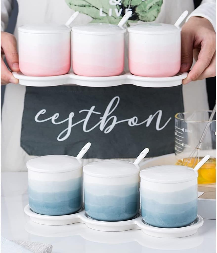 Product Name: Ceramic Gradient Color Condiment JarProduct material: CeramicProduct color: Gradient Color Scope: kitchen, restaurant, bathroom, etc.prompt:1. Please check the size and color before purchasing.2. Does not include items other than the seasoning cans shown in the product photos.3. Please note that due to the different monitors, slight chromatic aberration may occur, please understand.4. Due to manual measurement, please allow a small amount of error, refer to the actual size, thank you.5. If you find any problems with our products, please feel free to contact us by email and we will resolve the problem as soon as possible.6. Welcome your sharing and feedback so that we can provide you with better products and services.7. Thank you for visiting my store, click to enter my store, there will be a lot of products for your reference.The shape is modern and stylish, perfect for homes, hotels, cafes and restaurants, as well as the perfect holiday gift for family, friends and coworkers.