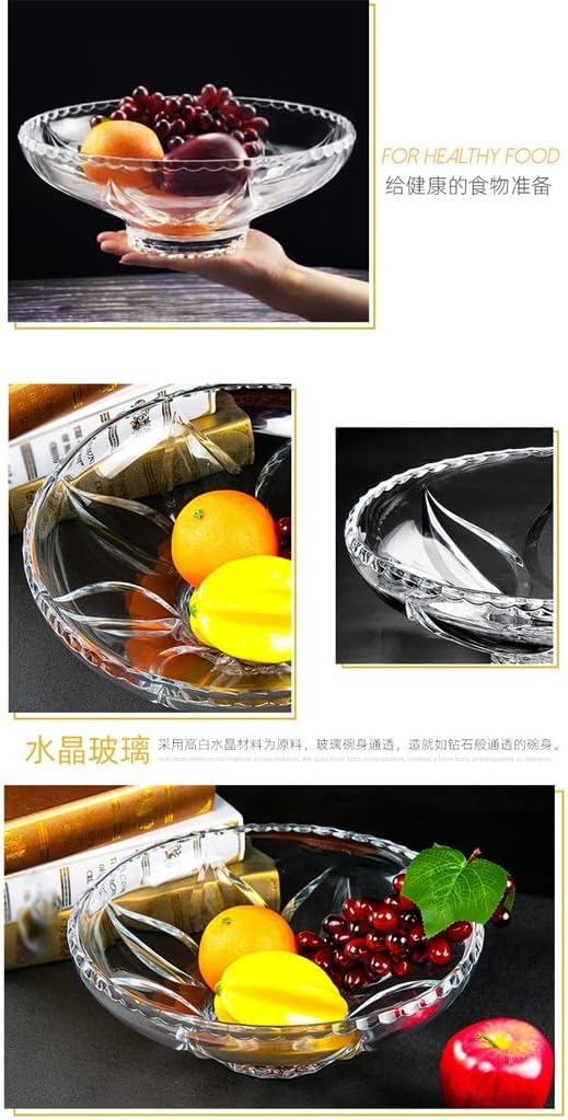 Using high white crystal material as the raws material, the glass bowl body is transparent, creating a diamond like transparent bowl body.Crystal clear, royal model, noble and elegantExquisite pattern forging, inheriting centuries of traditional Bohemian craftsmanship, crystal clear and transparentWidened high footed fruit tray with smooth polished bottom for stable placement without damaging the tabletopWidely used fruit tray in hand, allowing you to bid farewell to clutter and easily meet family needsMaterial: GlassProduct size: diameter: 320mm, height: 103mmProduct weight: 2661gPackage including:Fruit plate * 1(Other demo items not included).Note:Due to different monitors and lighting effects, the actual colour of the product may differ slightly from the colour shown in the pictures. Thank you!Please allow 1-2 cm deviation due to manual measurement.gift for housewarming, weddings, birthdays, or Mother's Day. Fits any home from farmhouse