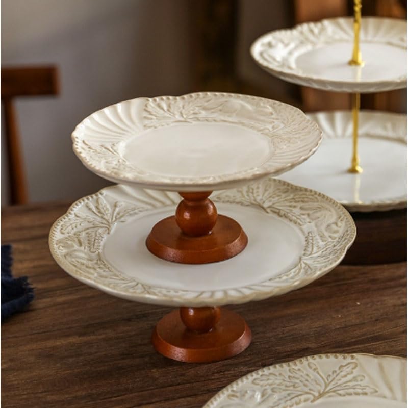 • Material: Experience the charm of our retro wooden high-legged ceramic plate that beautifully enhances any tea time or gathering. Its vintage aesthetic adds a nostalgic touch, making every occasion special