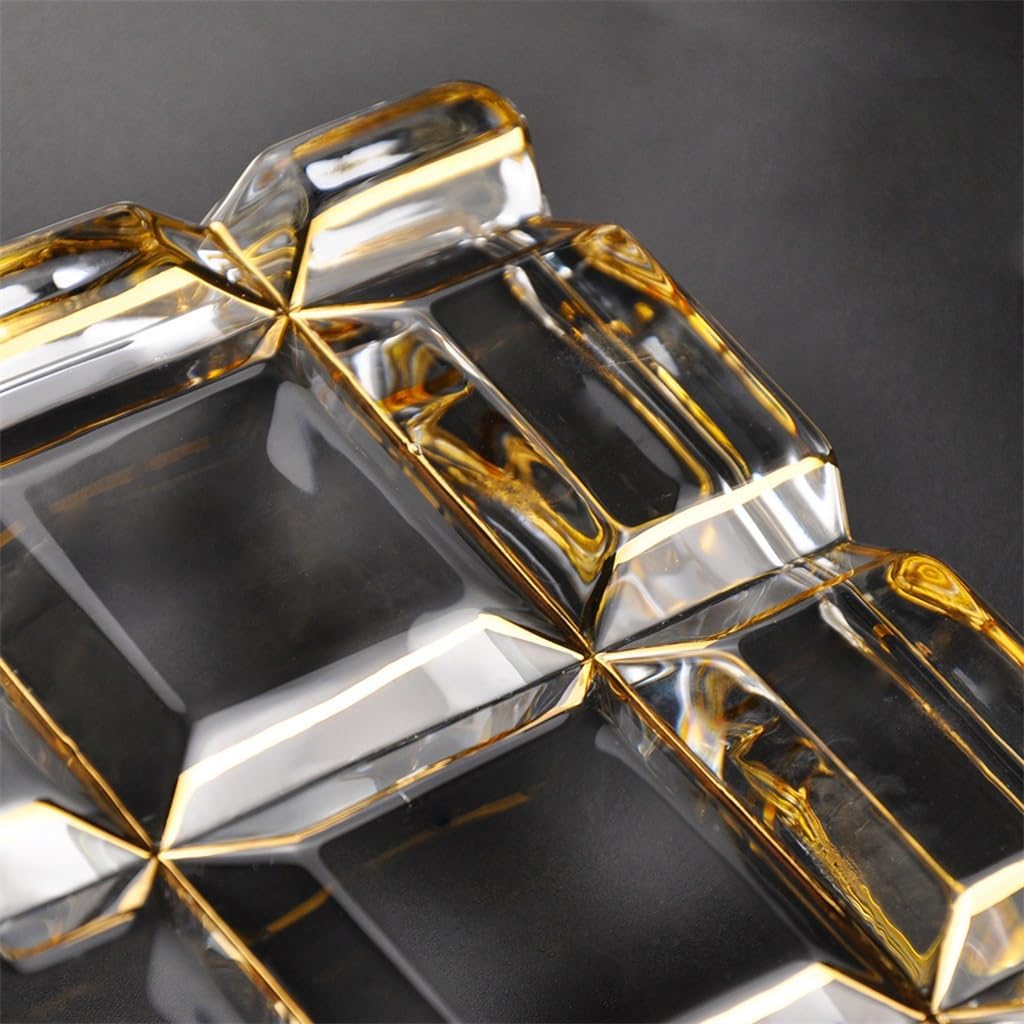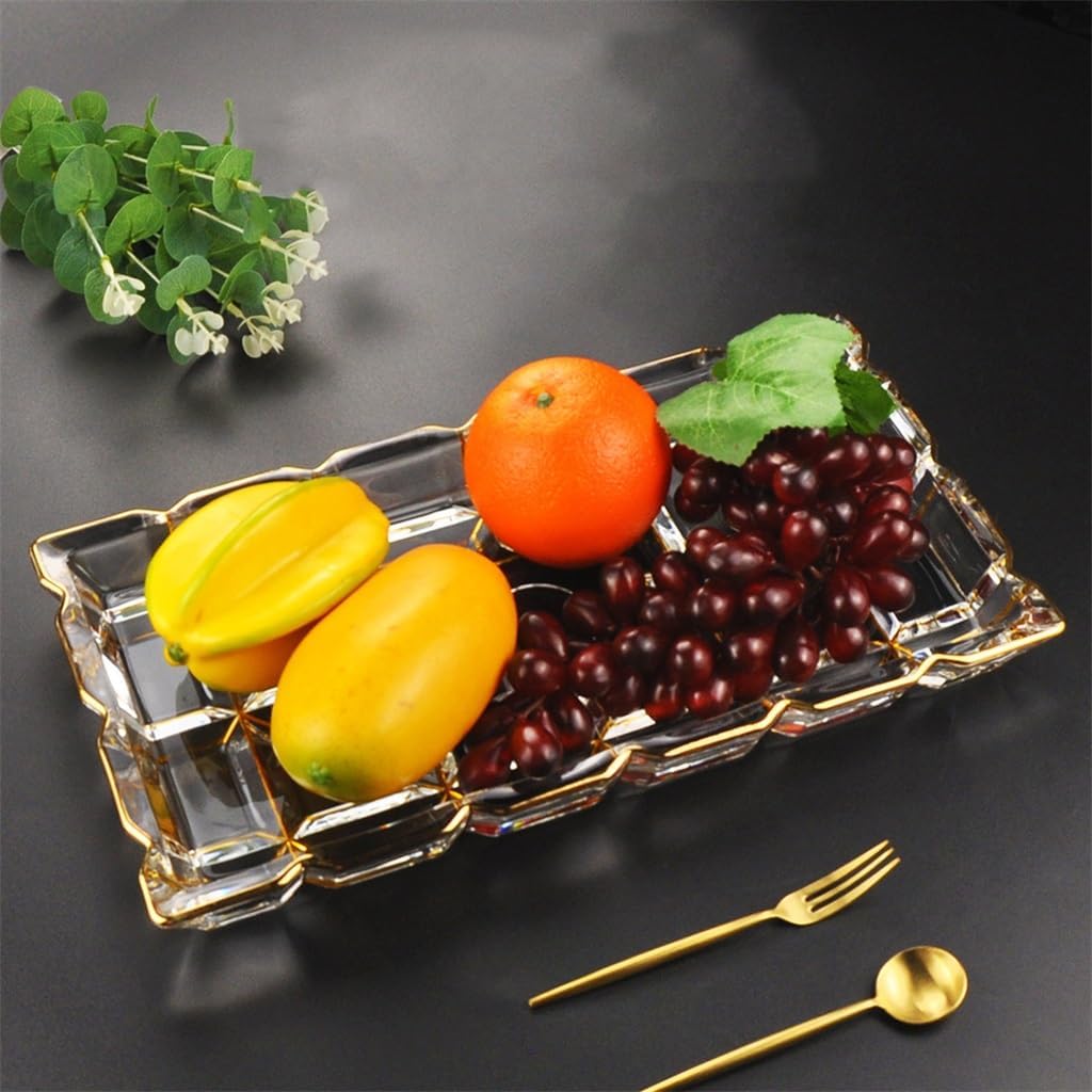 After polishing, the edges are smooth and not harmful to handsTrue gold border, combined with crystal glass, beautiful and elegant.Made of glass material, the fruit tray is thick and textured, with transparent and layered colors, and a simple and versatile designForged with crystal glass, inheriting the traditional craftsmanship of Bohemia for hundreds of years, incorporating elements, making it crystal clear and transparentLarge capacity is more suitable for holding fruits, candies, nuts, etc. It can also be used for storage, making it versatile, beautiful and practicalMaterial: GlassProduct size: as shown Package including:Fruit plate * 1(Other demo items not included).Note:Due to different monitors and lighting effects, the actual colour of the product may differ slightly from the colour shown in the pictures. Thank you!Please allow 1-2 cm deviation due to manual measurement.gift for housewarming, weddings, birthdays, or Mother's Day. Fits any home from farmhouse