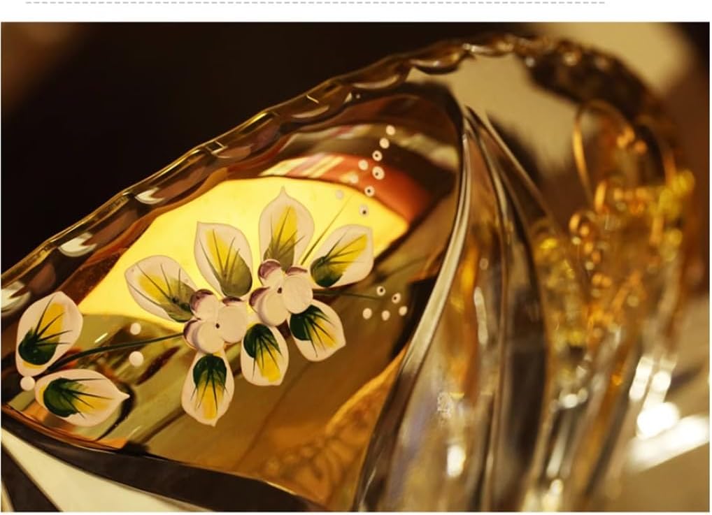 Adopting high white crystal material as material, the fruit plate is overall translucent, and hygienic, good permeability.Exquisite enameling process, enhance the overall noble quality of the fruit plate.handmade exquisite engraved flowers, showing the three-dimensional sense and beauty. High foot design, large and smooth base, polished smooth and flat.The use of enamel embellishment, the more delicate color, the more exquisite, to create a classic of the private enjoyment of the aristocracyReal gold border, combined with crystal glass, beautiful and generous.Material: glassProduct size: A diameter 267mm, height 227mmB diameter 226mm, height :117mmPackage including:Fruit plate * 1(Other demo items not included).Note:Due to different monitors and lighting effects, the actual colour of the product may differ slightly from the colour shown in the pictures. Thank you!Please allow 1-2 cm deviation due to manual measurement.gift for housewarming, weddings, birthdays, or Mother's Day. Fits any home from farmhouse