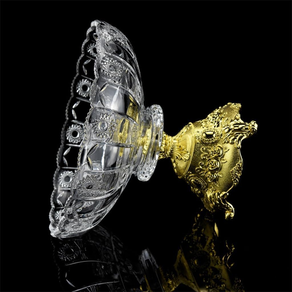 Smooth and rounded glass material, wall thickness with textureCrystal glass forging, inherited from centuries of traditional Bohemian craftsmanship, integrated with elements, crystal transparentEmbossed pattern, polishing, delicate and beautiful linesHardware base is smooth and thick, beautiful and generous, easy and comfortable to hold.As a fruit plate and a decorative piece, rounded edges do not hurt your hands.Material: glass, hardwareProduct size: as shownPackage including:Fruit plate * 1(Other demo items not included).Note:Due to different monitors and lighting effects, the actual colour of the product may differ slightly from the colour shown in the pictures. Thank you!Please allow 1-2 cm deviation due to manual measurement.gift for housewarming, weddings, birthdays, or Mother's Day. Fits any home from farmhouse