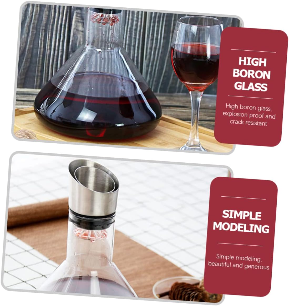 Package List 1 x Wine Decanter Features - Size: About 24.00X18.00X5.30cm/9.43X7.07X2.08inch glass decanters - Color: White - Material: High Borosilicate Glass - You can send it to family and friends who like to drink, and they will . - Made from high-grade material, smooth and bright, gentle and practical. - Can very well help you to store wine and make it have dense taste. - The artistic appearance design is simple and , which can match your wine very well. - The shape is simple, beautiful and generous, suitable for banquets or banquets, and also suitable for restaurants, bars, families, hotels, etc.Goods Informationglass decanters Made with excellent craftsmanship and reasonable design, it is very suitable to advance the flavor of your favorite wine. This is a wine decanter, made of , bright and transparent, and can serve you well. It will make the taste and texture of your wine softer and richer