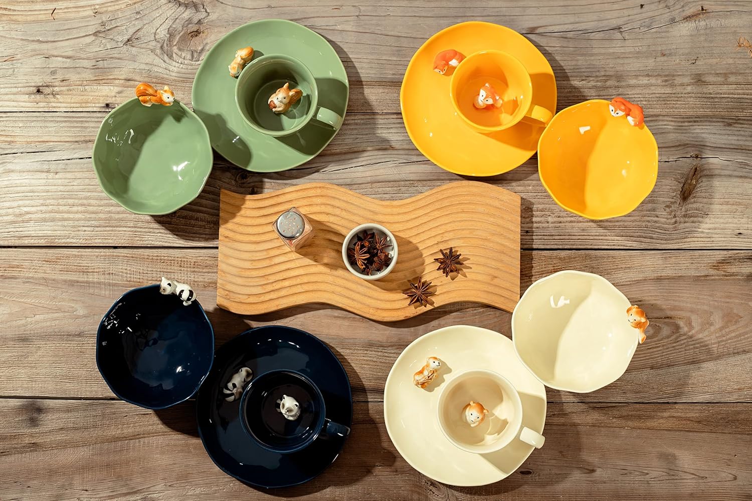 Cute Animal Ceramic Plates Set. The Dessert, Salad, Appetizer, Small Dinner Plate. Microwave, Oven, and Dishwasher Safe, Kitchen Porcelain Dish(8 inch)