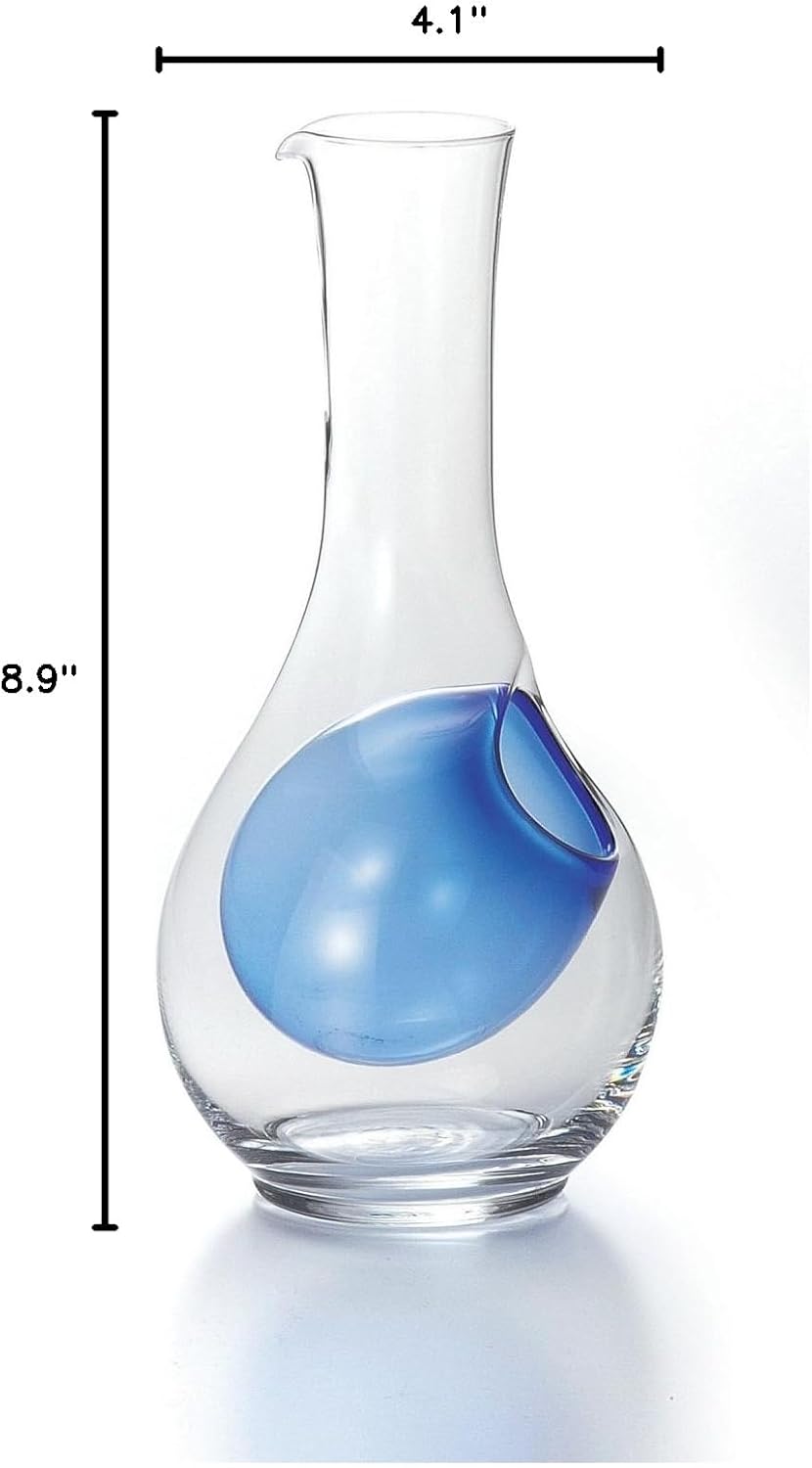 Simple solid glass carafe Pocket is accented with blue glass Large Size There may be slight variations in size, shape and weight due to handmade work.