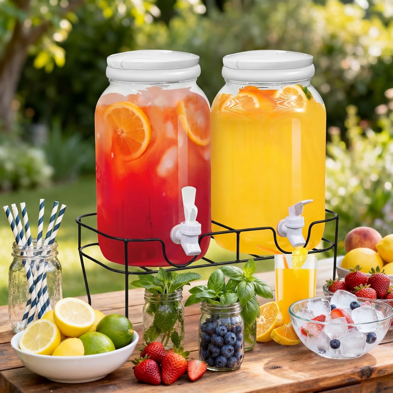 Features: Convenient party supplies: Our water dispenser with stand are handy party supplies to have on hand. They make your event more organized, and they add a touch of elegance to your drink station. Suitable for homemade drinks: If you are favor of making homemade drinks, this set of iced beverage dispensers is ideal for showcasing them. Your guests may appreciate the lovely presentation of your beverages, and you'll love how easy they are to serve. Specifications: Main material: Drink dispenser: PTEStand: ironColor: as shown in the pictureSize: Drink dispenser: about 10.6 x 5.1 x 4.5 inches/ 27 x 13 x 11.5 cm, 1 gallon/ 3.8 l in capacityStand: about 13.2 x 6.6 x 6.3 inches/ 33.5 x 16.8 x 16 cmPackage includes: 2 x Plastic drink dispensers1 x Iron standNotes: Manual measurement, please allow slight errors on size. The color may exist a slight difference due to different screen displays.