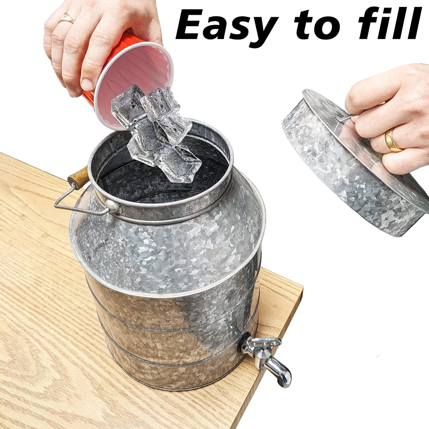 | Item Type Name | 2½ Gallon Beverage Dispenser with Spout for Pouring, Carry Handles, and Lid - Sturdy Galvanized Steel, Ideal for Parties, Weddings, Indoor or Outdoor, Silver Color (12" Wide, 9.5" Tall) |