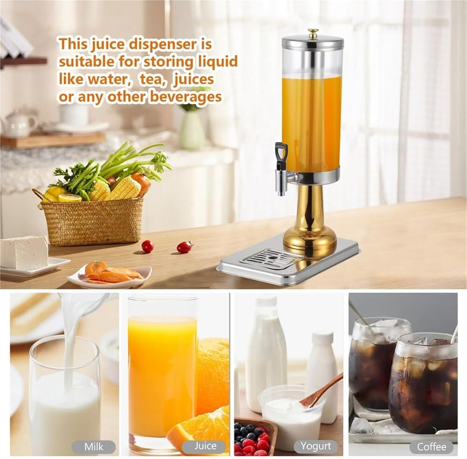 Product Name: Drink Dispenser, Water Dispenser, Beer TowerMaterial: Stainless Steel + PlasticCapacity: 6LThis double-slot beverage dispenser features a tap for easy pouring, ensuring a vertical flow and preventing splashing.This dispenser is equipped with stainless steel cooling tubing, allowing you to add ice cubes to chill your drinks.This 6-liter dispenser comes with a stand for secure placement of beverages.This dispenser is suitable for weddings, parties, outdoor picnics, camping, cafes, buffets, restaurants, and bars. It can hold a variety of beverages, such as lemonade, fruit tea, milk, beer, hot tea, boiling water, and coffee.1. Our dimensions are measured manually and may have slight errors. Please understand.2. Due to differences in photography equipment and conditions, there may be slight color variations. Please refer to the actual product for the most accurate representation.