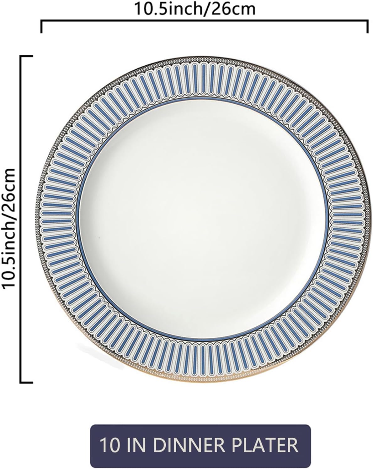 Bone China Dinner Plates Set of 4, 10 Inch Salad Serving Modern Round Dishes.Dinnerware Dishset for Kitchen,Dishwasher Safe.