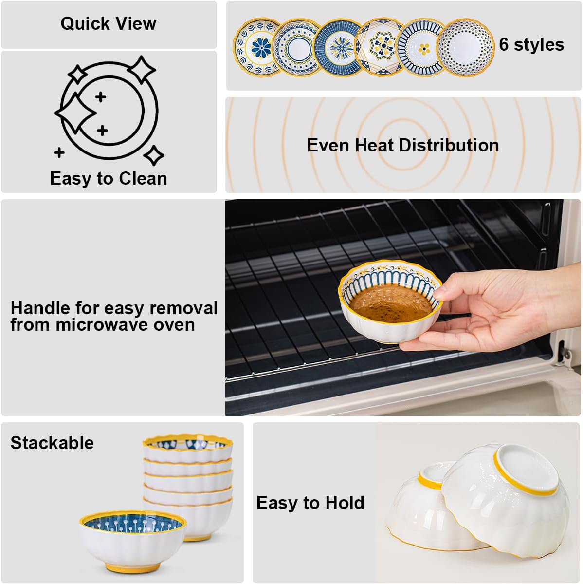 Bundle-2 items: Yeacccng Pasta Bowls Set of 4, Small Bowls Set of 6, Scratch-Resistant, Lead-Free, Dishwasher & Microwave Safe, Easy Clean