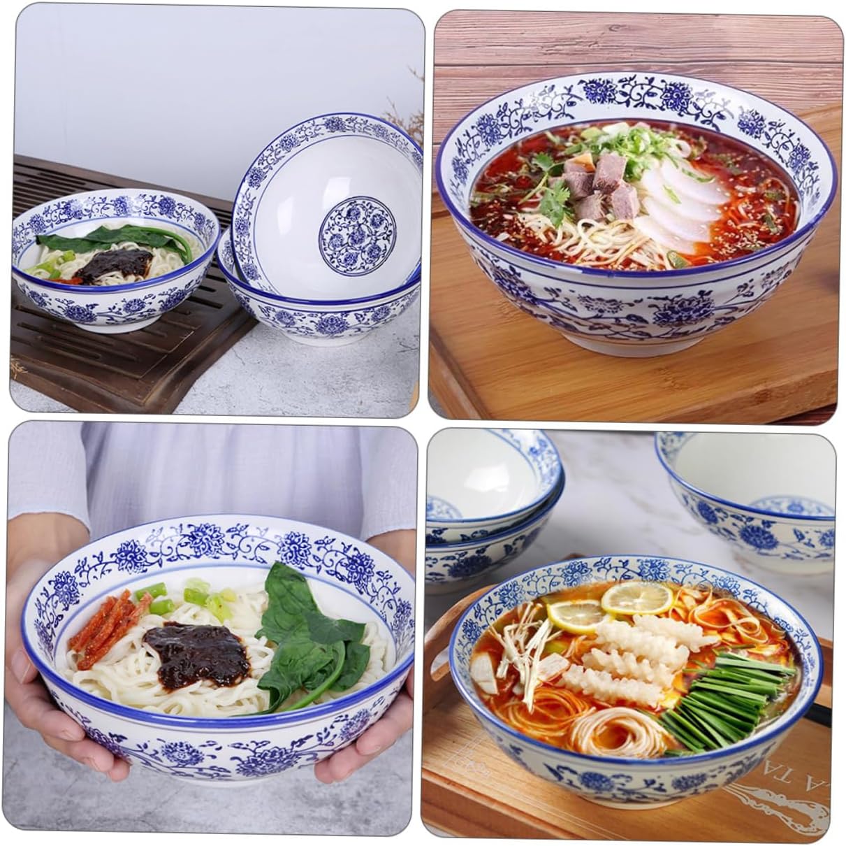 Package Include 2 x Bowls Characteristics -Size: 21.00X21.00X8.00cm/8.25X8.25X3.14in Retro Style Bowl -Color: Blue soup bowl -Material: Ceramic bowl. -This bowl is suitable for soups, salads, noodles, cereals, pasta, fruits, etc ramen bowl ceramic. -The craftsmanship of our product will bring you a good experience ceramic bowls. -This bowl adopted with ceramic materials, easy to clean and to use pasta bowl. -This ceramic bowl is designed with workmanship, beautiful bowl shape vintage noodles bowl. -The creative large opening design makes it difficult to spill the delicious food Ramen Bowl.Goods Informationsalad bowl The patterns make ceramic bowls more beautiful and attractive.ramen bowl ceramic This is a ceramic bowl, which are made of , and you can rest assured to use.large bowl Suitable for buffets or restaurants, enjoy all your favorite delicacies.ceramic ramen bowl Fits your perfect size so that they always fit all of your favorite snacks and foods