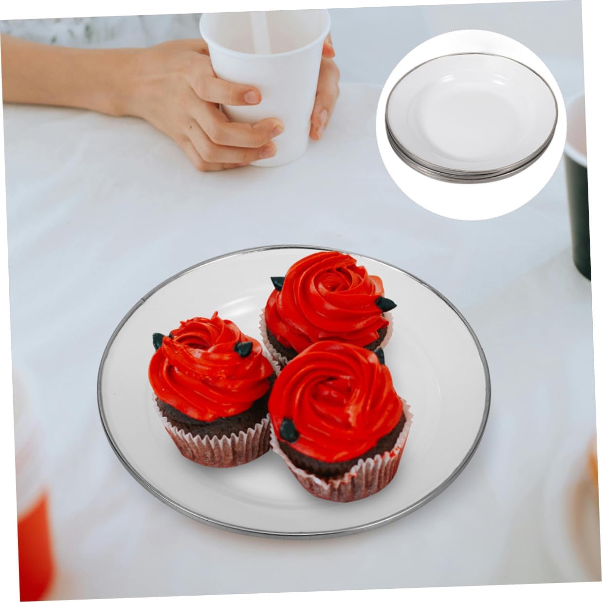 Package Include 4 x enamel plates Features -Product Info:Enamel disc -Size:22.00X22.00X3.00cm/8.65X8.65X1.18in -Material:Enamel -Color:White -Retro style, shows your taste, suitable for most home decorations styles tableware. -Made of enamel materials for durability. Strong and smooth, the food tray can not easily break. -Can be placed on the dining table, meeting room, office, living room to entertain your guests bread plate. -Suitable for most events, such as wedding, family gathering, banquet, camping, New Year, etc enamel plate. -The enamel plate is great for serving and holding snacks, fruits, nuts, desserts and other food kitchen plate.Goods Informationretro style plates Crafted from thickened enamel material, this plate is not only but also easy to clean, ensuring use.decorative enamel food dishes Experience the function and retro charm with our Thickened Snack Enamel Plate.small tray enameled Its pure white design shows a classic vintage style, adding a rich retro atmosphere to any setting