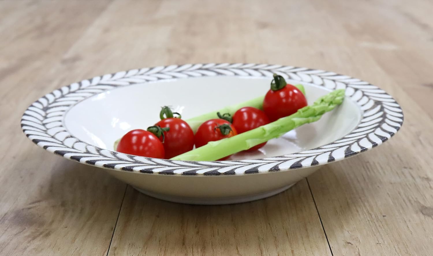 The leaf motif is accented with a thick Scandinavian style tableware. Great for wild ingredients.