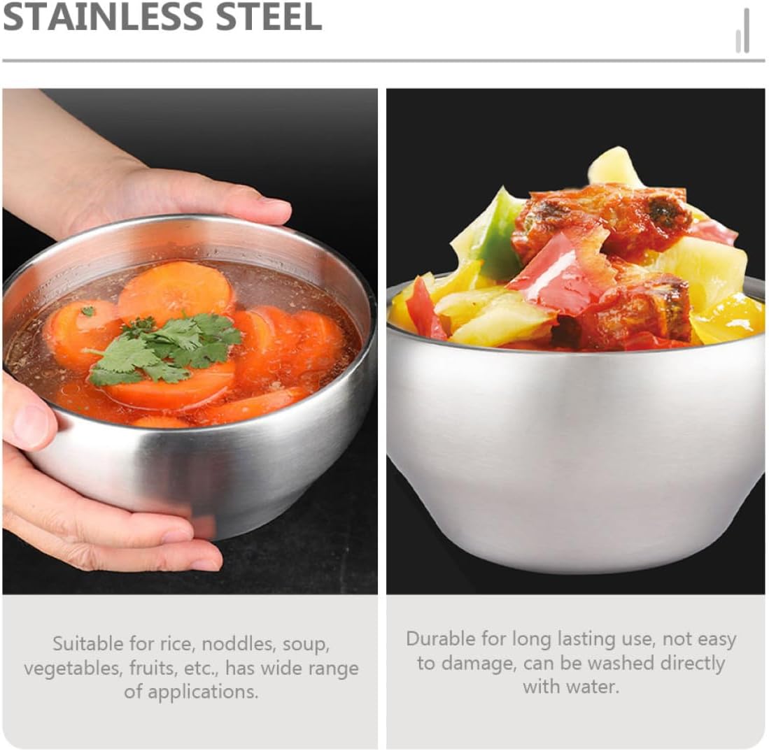 Package Include 4 x Bowls Characteristics -Size: About 12.00X12.00X7.00cm/4.72X4.72X2.75inch metal serving dishes -Color: Silver noodle bowl -Material: Stainless steel stainless steel bowl -Made of high-grade and enduring material, healthy and , stainless steel bowls. -It has a wide range of uses and can be used in salads, rice, fruits, etc ramen bowls. -Easy to clean, smooth edges, easy to hold, suitable for people of all ages bowls for kitchen. -Unique and creative design, suitable for many scenes such as home, buffet, restaurant, etc Rice Bowl. -The edges of the bowl are smooth and well made, which will not make you hurt ramen bowl.Goods Descriptionnoodle bowl You can use it in any occasion, such as daily use, family gatherings, parties, bars and restaurants.bowls for kitchen This bowl can not your food, but also decorate your home.ramen bowls The design of this bowl is very creative, suitable for rice, salad, noodles and cereals