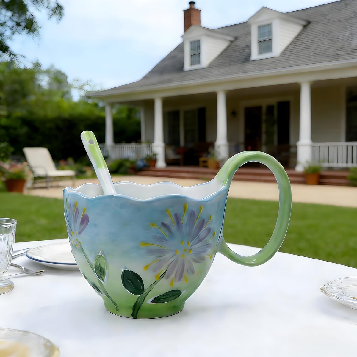 | Product Style | Chrysanthemum - Handmade Relief Loop Handle Soup Bowl with Spoon |
