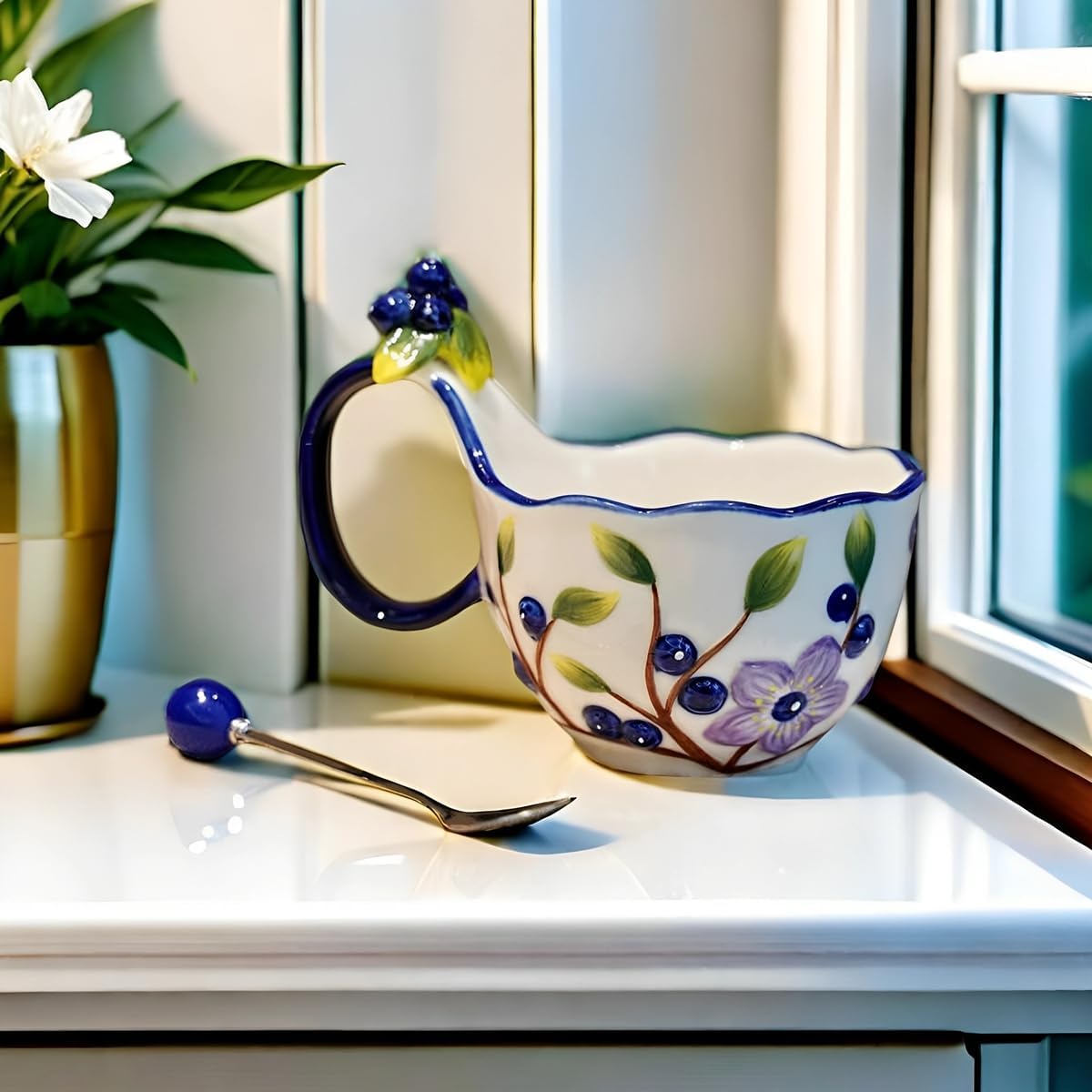 | Product Style | Blueberry - Handmade Relief Loop Handle Soup Bowl with Spoon |