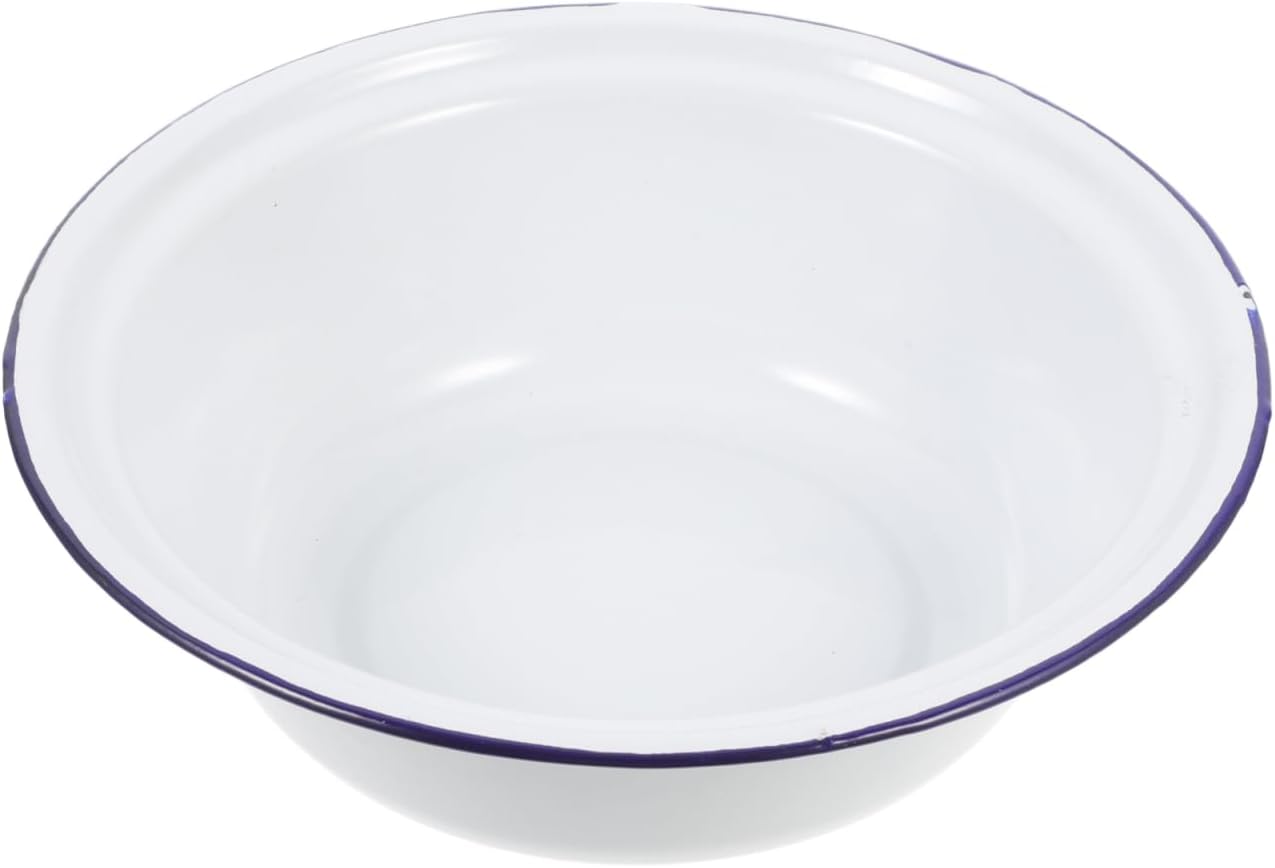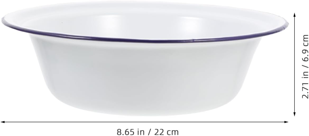 Package List 1 x Enamel Bowl Features - Color: White kitchen soup holder - Size: 22.00X22.00X6.90cm/8.65X8.65X2.71in vintage enamel basin -Material:Enamel decorative soup basin - This is a multipurpose Enamel Basin, which can also be used as home decoration. It is very useful enamel salad bowl. - Enamel Bowl can be used as a soup basin, dishes basin, fruit basin and much more you want retro enamel basin. - Large capacity is suitable for your various needs, such as washing face and mixing, very enamel bowl. - Multi-functional use, it can wash rice and fruits and vegetables, mix eggs, make dough and so on kitchen basin. - The smooth enamel surface is easy to clean, and it is also a container for storing kitchen lard enamel basin.Goods InformationThis enamel bowl is crafted using traditional enamelware techniques, ensuring safety and durability for everyday use.Its sturdy construction makes it resistant to chipping and breaking, providing reliability.The rolled rim design adds an extra layer of protection for your fingers, making it comfortable to handle.With a classic white finish, this bowl complements various settings, from casual family meals to festive gatherings.Measuring 8.66 inches in diameter and 2.71 inches in height, it offers ample space for serving soups, salads, vegetables, or other dishes.Lightweight at just 68.50 grams, it is easy to carry and store.Perfect for mixing, serving, or storing food, this versatile enamel bowl is a practical addition to your kitchen.Whether used for daily meals or special occasions, its timeless design and functionality make it a reliable choice for any household
