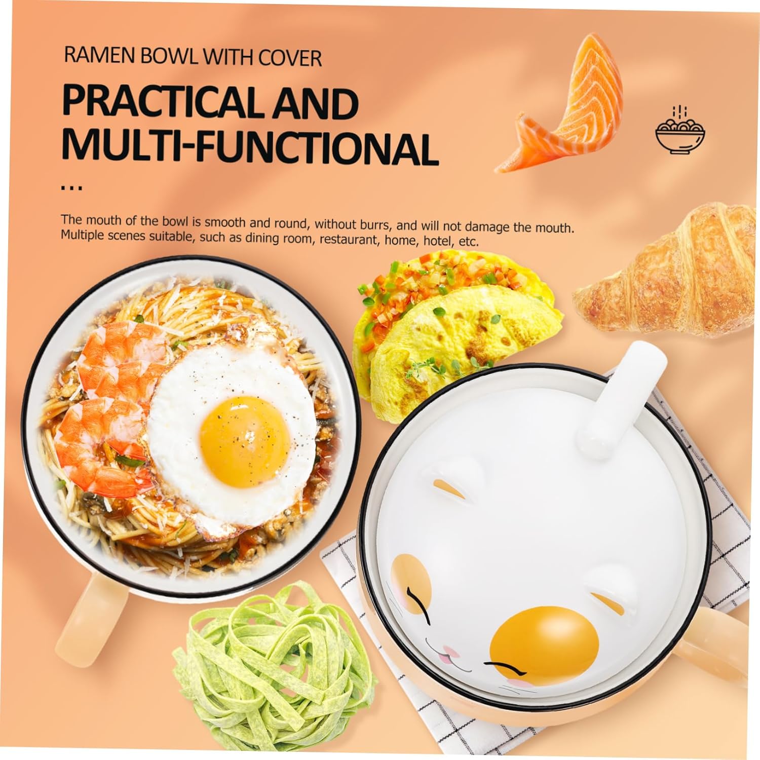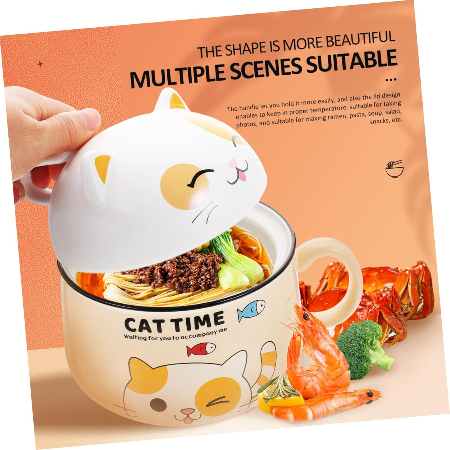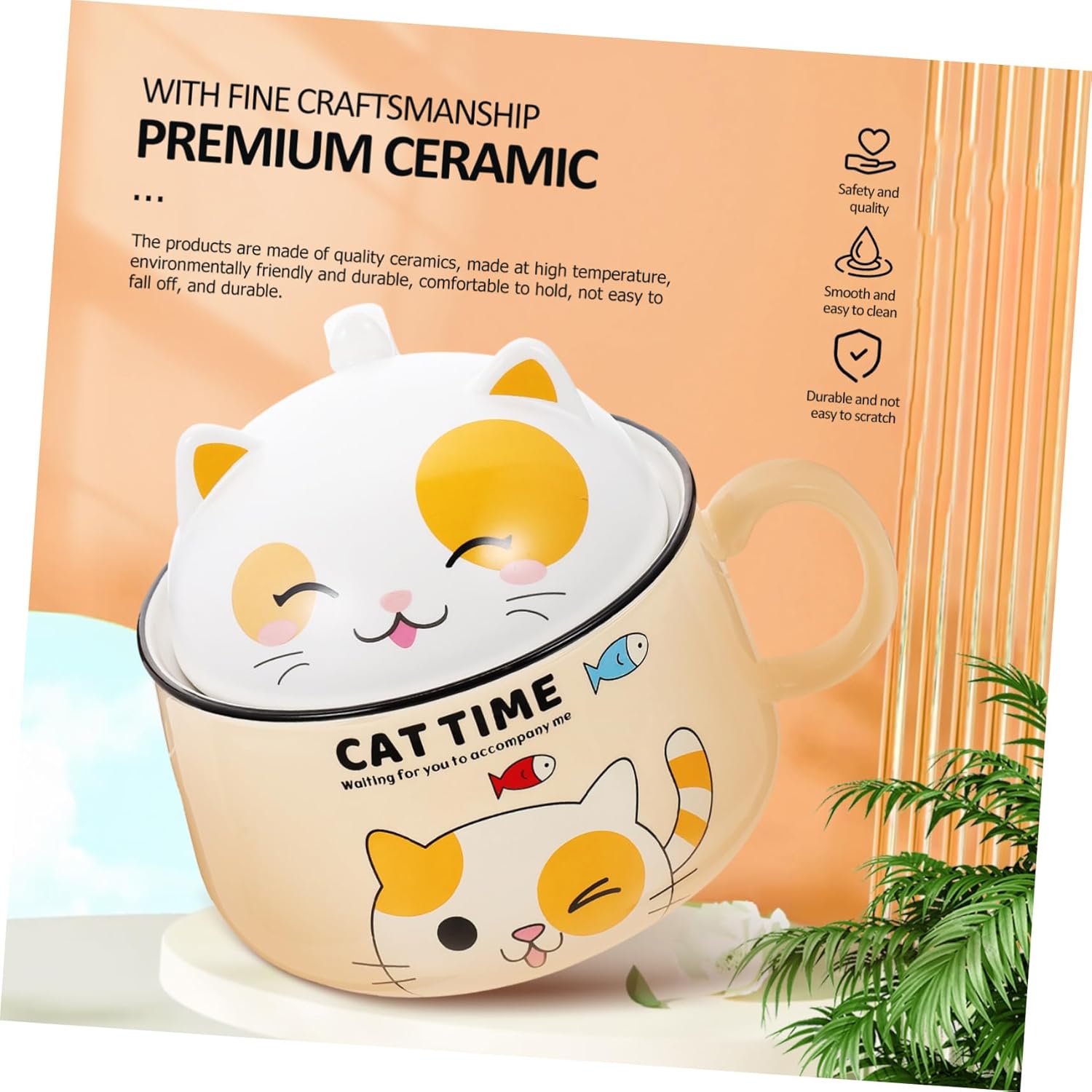 Package List 1 x Instant Noodles Bowl Features -Material:Ceramic large capacity rice bowl -Size: 18.00X15.00X15.00cm;/7.07X5.89X5.89in; ceramic ramen bowl -Color: yellow instant noodle bowl with lid -In adoption of ceramic materials, this bowl is smooth and comfortable touch, for long term to use curry bowls. -The lid design enables to keep in proper temperature, bringing you satisfying using feeling noodle bowls. -Smooth and polished surface, easy to use and clean, you can use with much more confidence ceramic bowls. -Enough capacity, can store soup, salad, porridge, rice and more food, satisfy your demand instant noddles bowl. -Light in weight, also the handle enables you to more easily, saves time and efforts soup bowls.Goods Informationbreakfast bowls Lightweight and convenient for holding food.instant noodle bowl with lid Proper size, easy to store and will not take up many spaces.cartoon is perfect for holding rice, noodle, soup and other food.instant noodle bowl This food bowl with lid is made of , and to be contacted with food